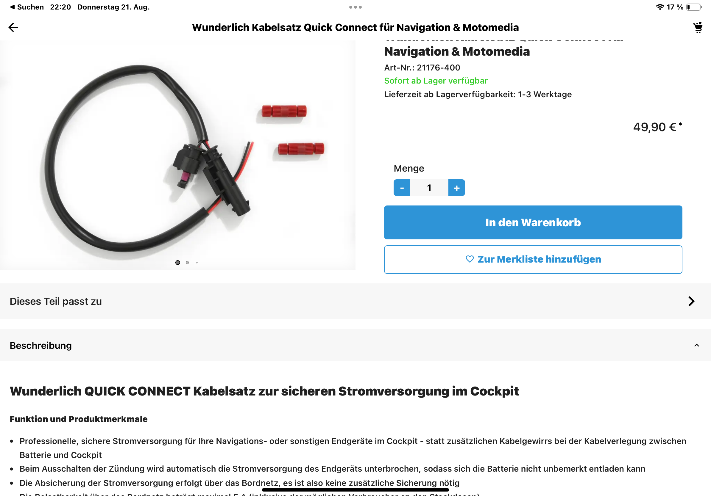 Das ist der Stecker von der Originalen 12V Dose am Cockpit.