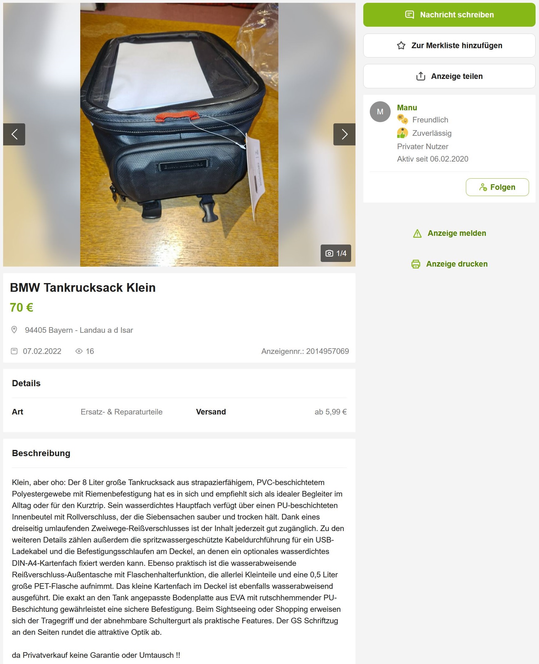 Suche Original BMW-Tankrucksack "Klein" für die R1250GS bis 65€ inkl Versand.