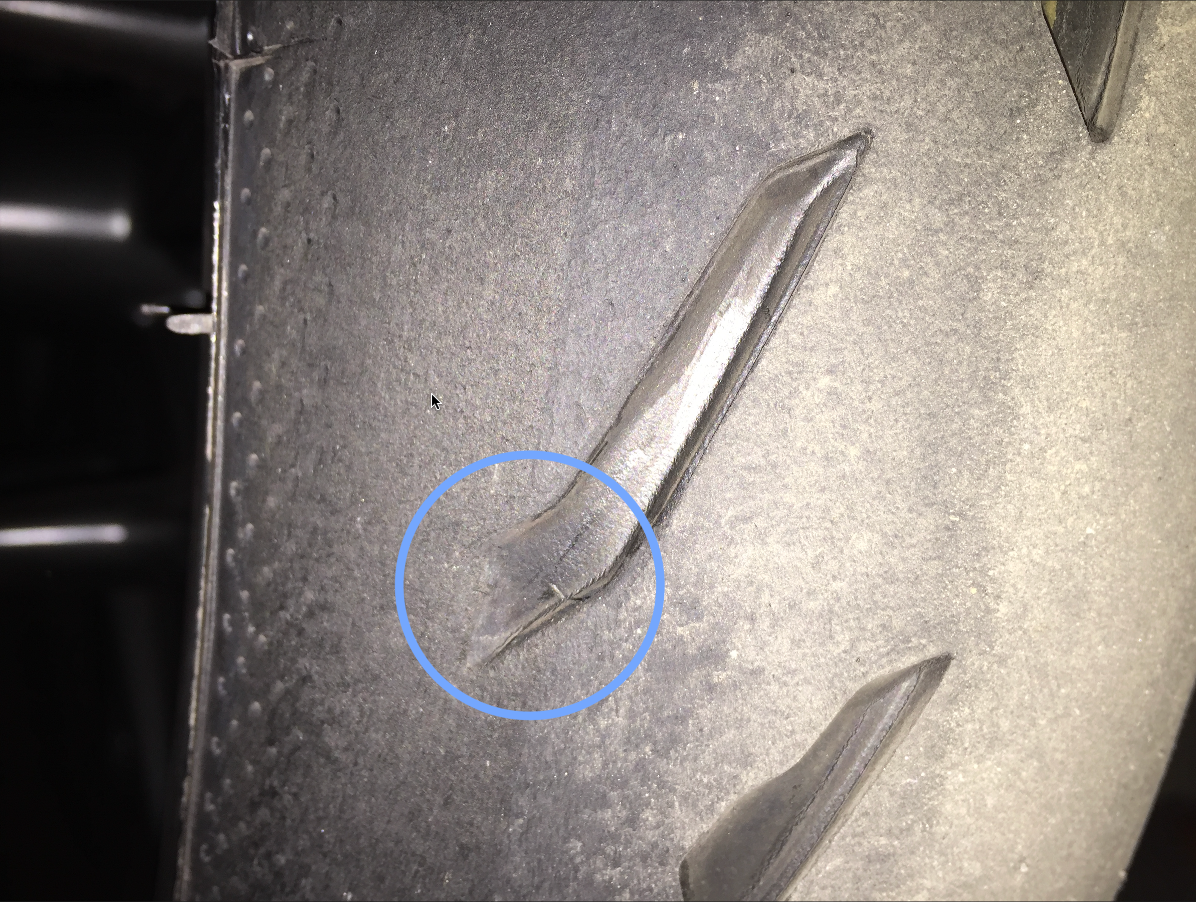 Ich denke, diese Vertiefung in der Flanke könnte ein Indikator sein, wie viel Gummi dort noch bis zur Verschleißgrenze vorhanden ist.