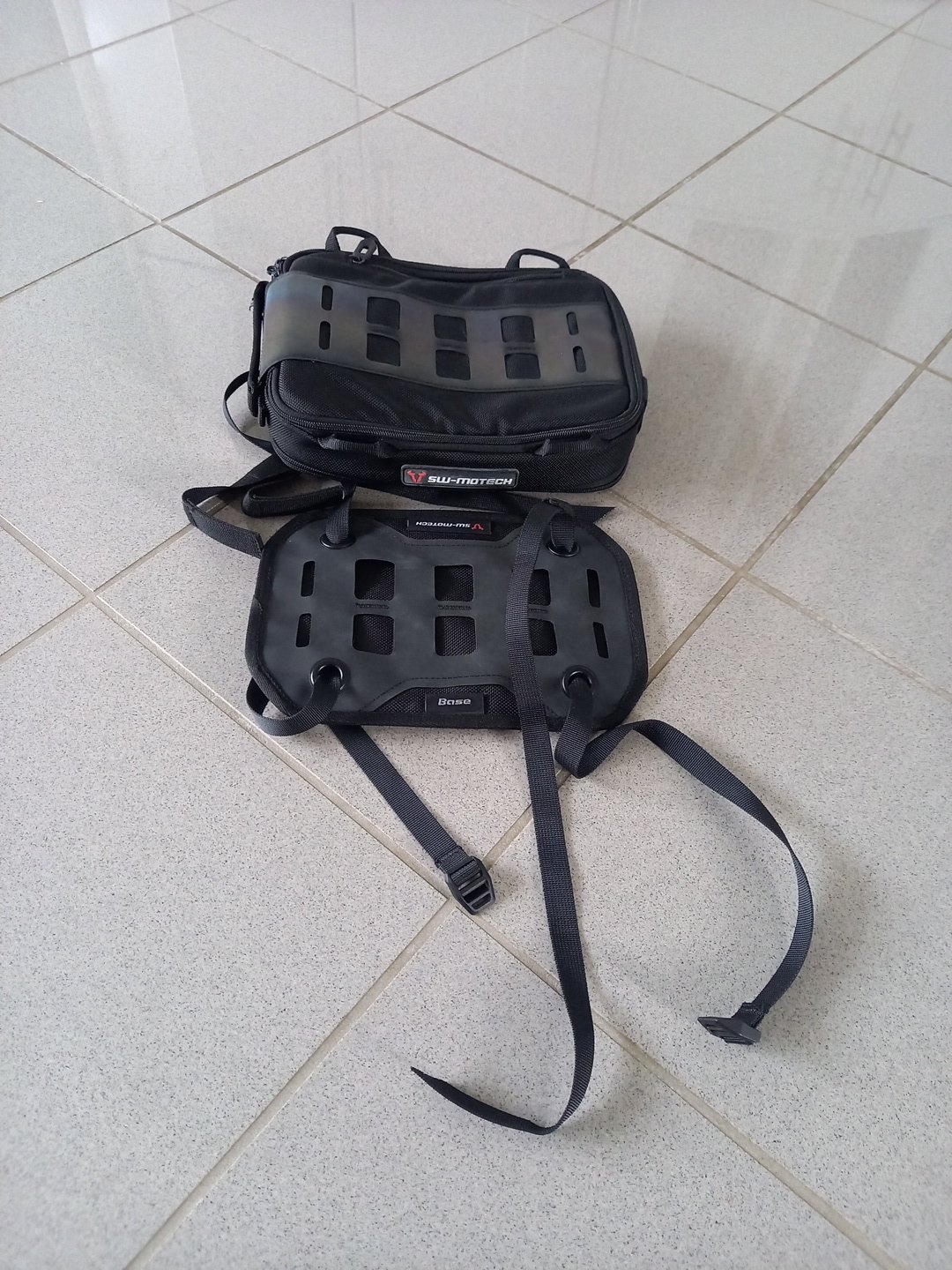 Im Set enhalten sind das PRO Base und die Zusatztasche PRO Plus. Der Textilholster mit MOLLE-Aufsatz wird mit Zurrgurten auf dem Soziussitz befestigt, dort kann dann die PRO Plus anhand der MOLLE-Schlaufen einfach und sicher angebracht werden.