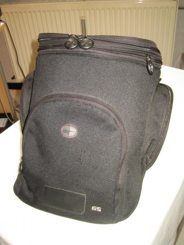 gebr. Quick-Lock Tankrucksack Modell "GS" von SW-Motech mit montiertem Tankoberring, Regenhaube auch dabei