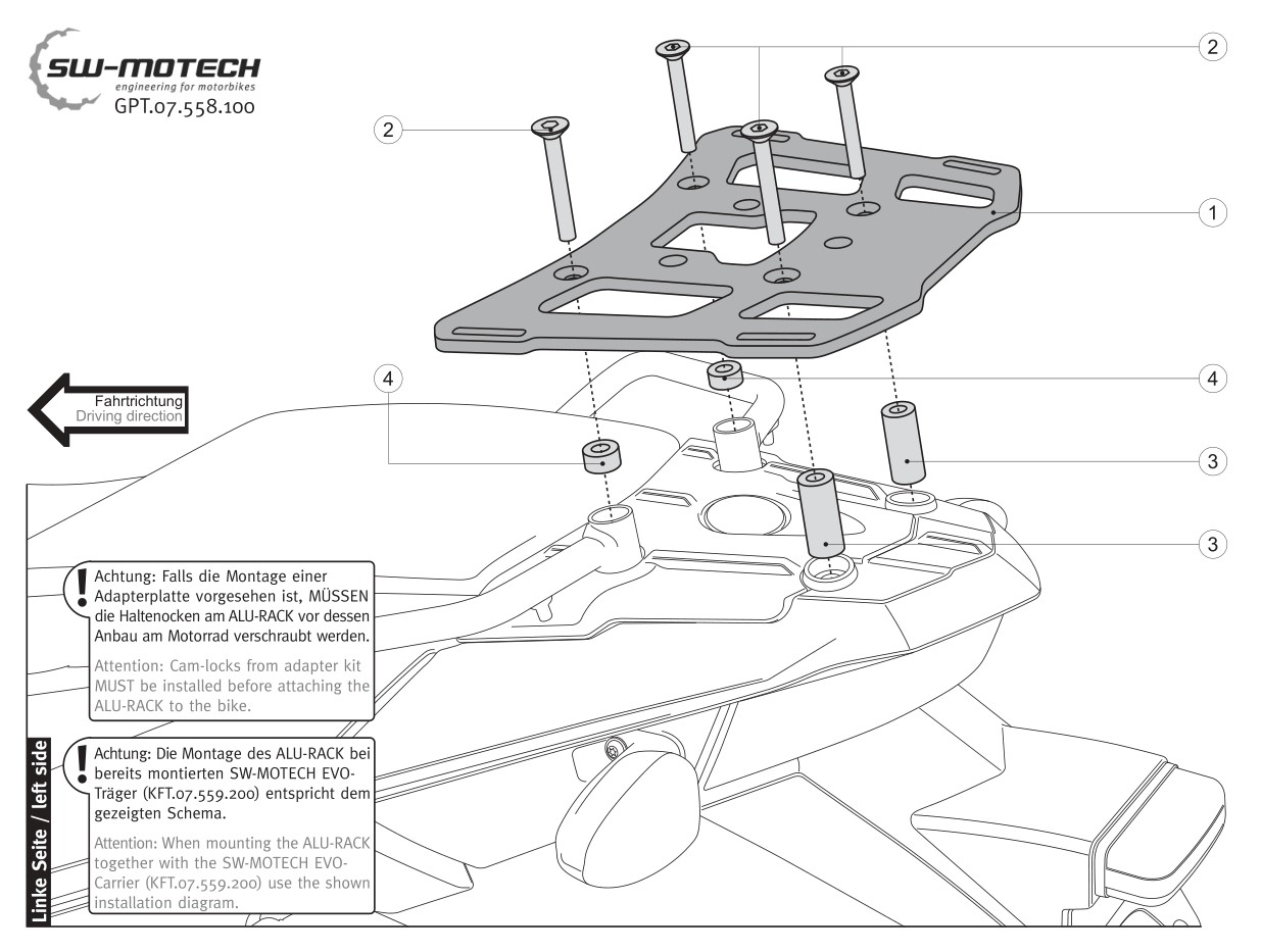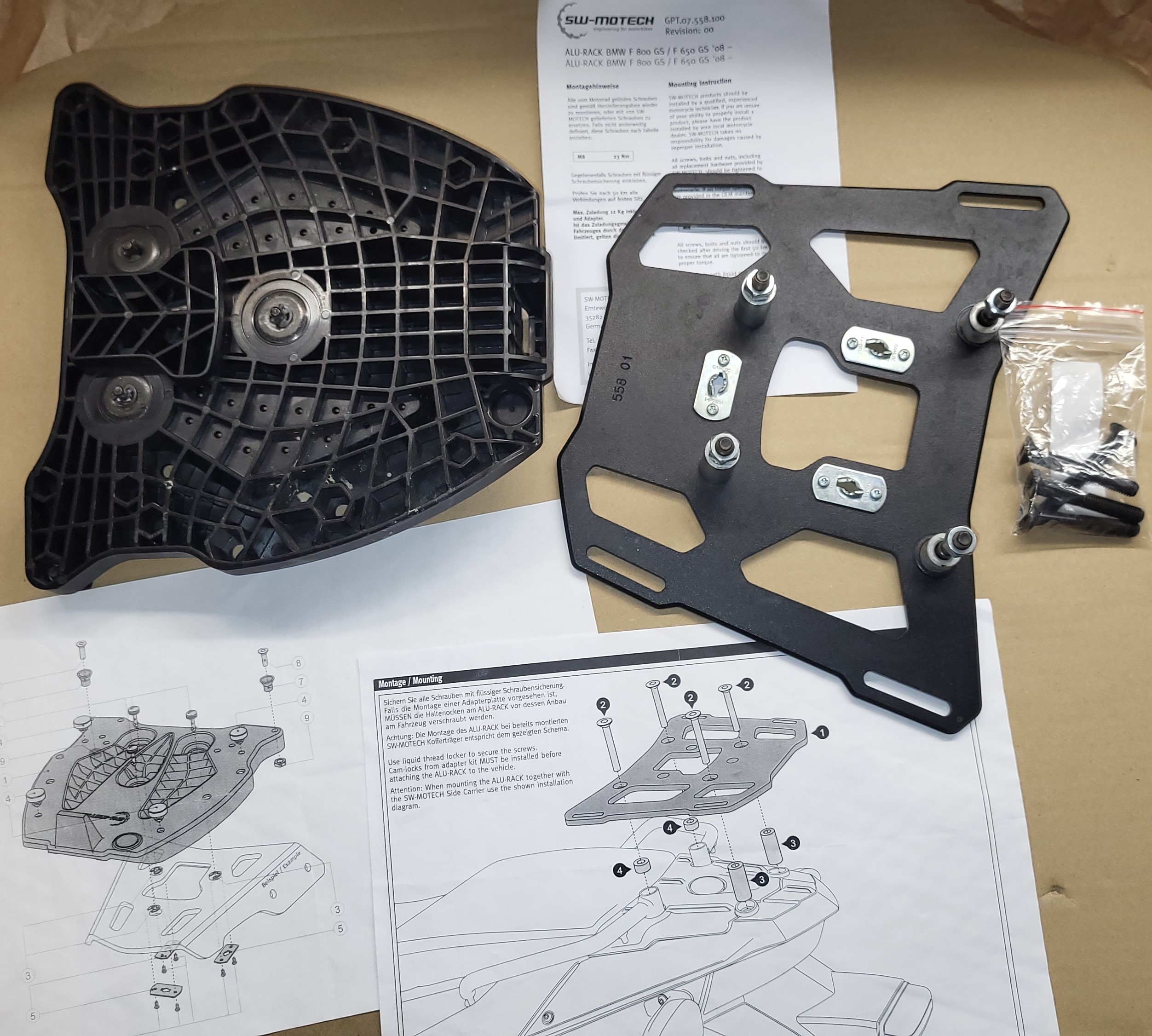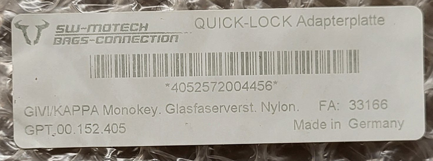 Biete eine SW-Motech Quick-Lock Adapterplatte für Givi und Kappa Monokey Topcases mit SW-Motech ALU-Rack für F800/700/650GS