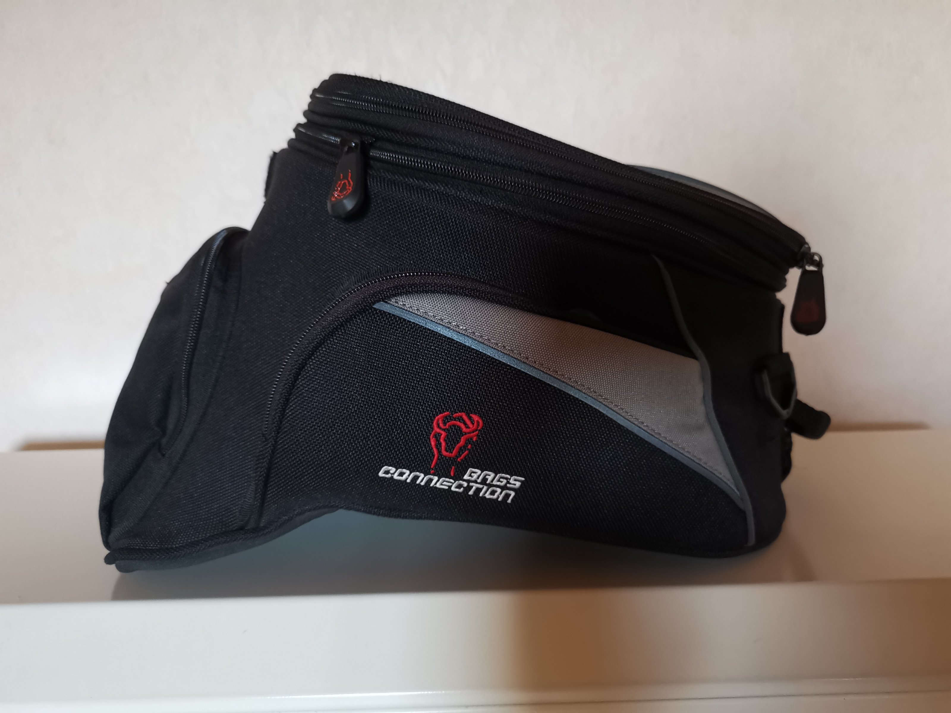 Diesen habe ich halt dann dort stehen lassen und habe nur den anderen Zipper dorthin gezogen, um den Tankrucksack zu schließen.
