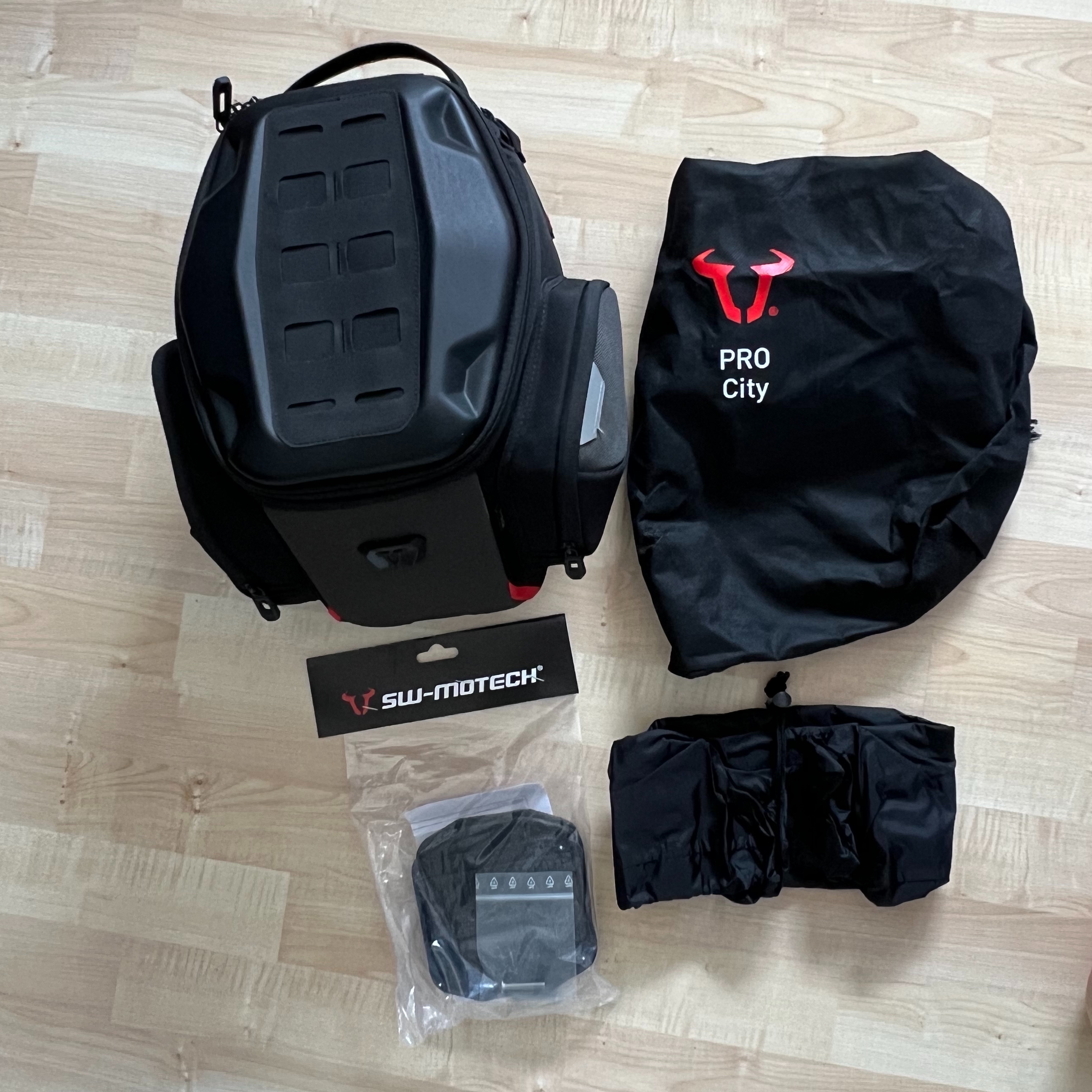 Ich verkaufe einen SW-Motech PRO City Tankrucksack inkl. Original Schutzbeutel, Regenhaube und einem Set Erhöhungselemente (benötigt, wenn der TRS auf einer R1300GS montiert werden soll).