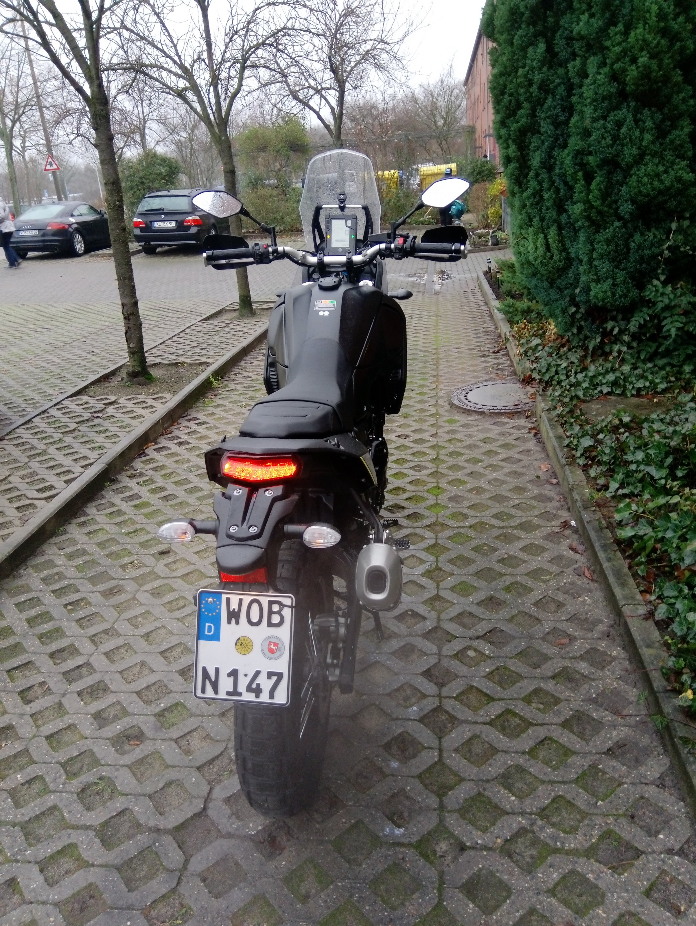Yuhu,Hurra:yeahh: meine Nr.2 ist da .Als sie aus dem Tranporter rollte staunten ich nicht schlecht ,wie niegel,nagel Neu,stand sie vor mir Top,Top,Top , grosse Freude, der Techniker stellte sie auf meinen Platz ,lies sie an und schaltete die Gänge durch ,ich lief aufgeregt um sie herum,und wir gingen zur Formalität über, ich bekam eine Schwarze rot abgestickte Yamaha Mappe wo die 3 Schlüssel ,das Bordbuch ,das Serviceheft,die Visitenkarte des Händlers und einiges mehr.Und wie ich erfuhr hatte ein Händler sich übernommen (Corona )und ihn gebeten die T700 in Kommission zu verkaufen.Hat nicht lange gestanden ,denn ich rief an, und die Sache kam ins Rollen wie ihr wisst.Ich habe gleich meine KFZ -Schild rangepappt und bin losgedüst ,bei leichtem Regen . Geil sieht sie aus ,selbst mit der hohen Scheibe. Das war ein toller Service von der Firma MKM :up:aus Heningsdorf Castor Brauxel.Leider etwas unscharfe Fotos bei dem schlechten Wetter und mit zittrigen Händen .8450 € +250€ Transport bezahlt . Gruss Jens und Dicken Schmatzer an Reiners Birne He,He