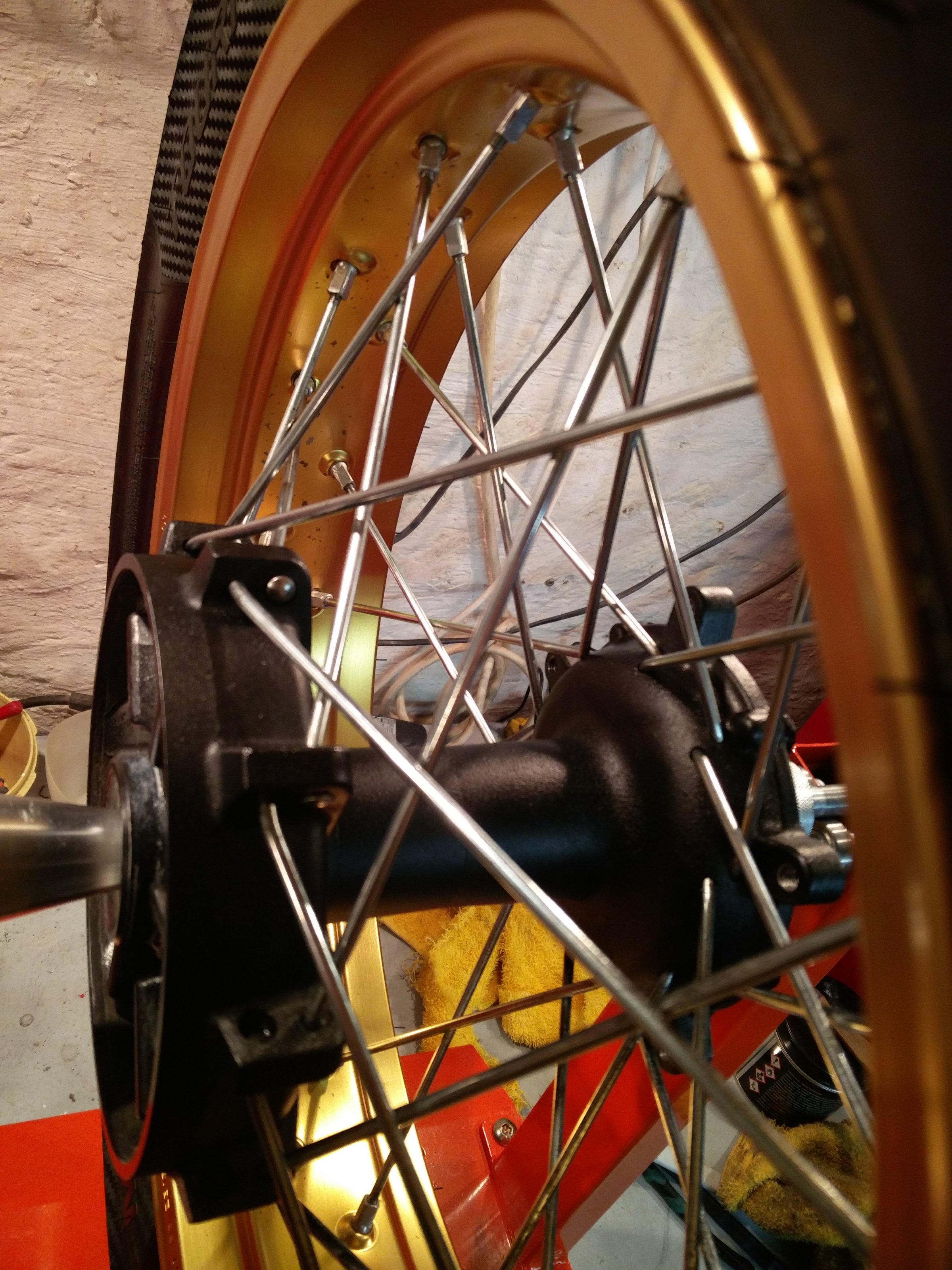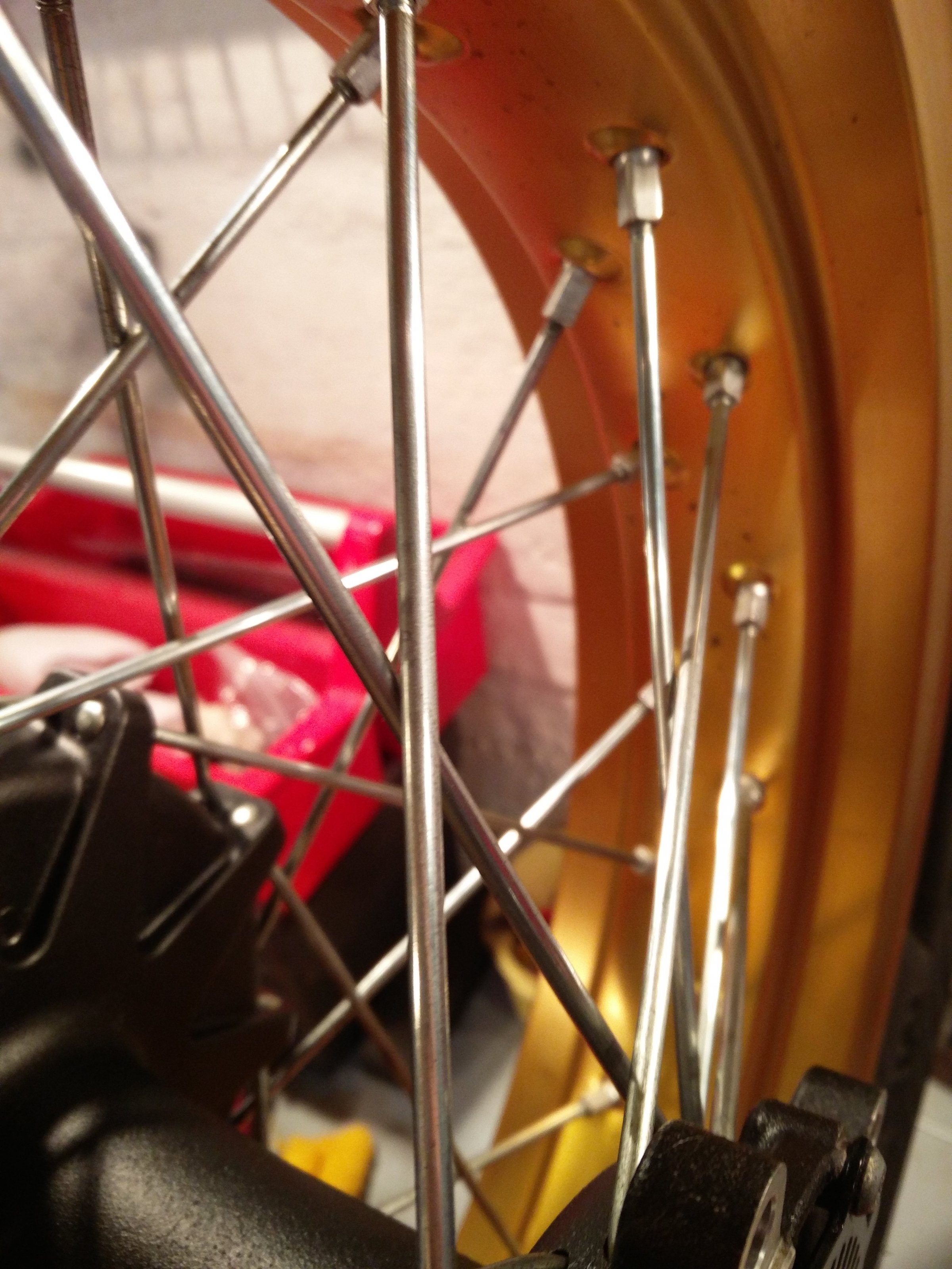 Zur Erinnerung: die ersten Ténérés hatten das Problem mit den minderwertigen Speichen, die schon nach kurzer Zeit schwarze Flecken hatten. So fahre ich jetzt seit 2019 rum, jetzt hab ich mich ans Hinterrad gemacht und mal die Speichen geputzt.