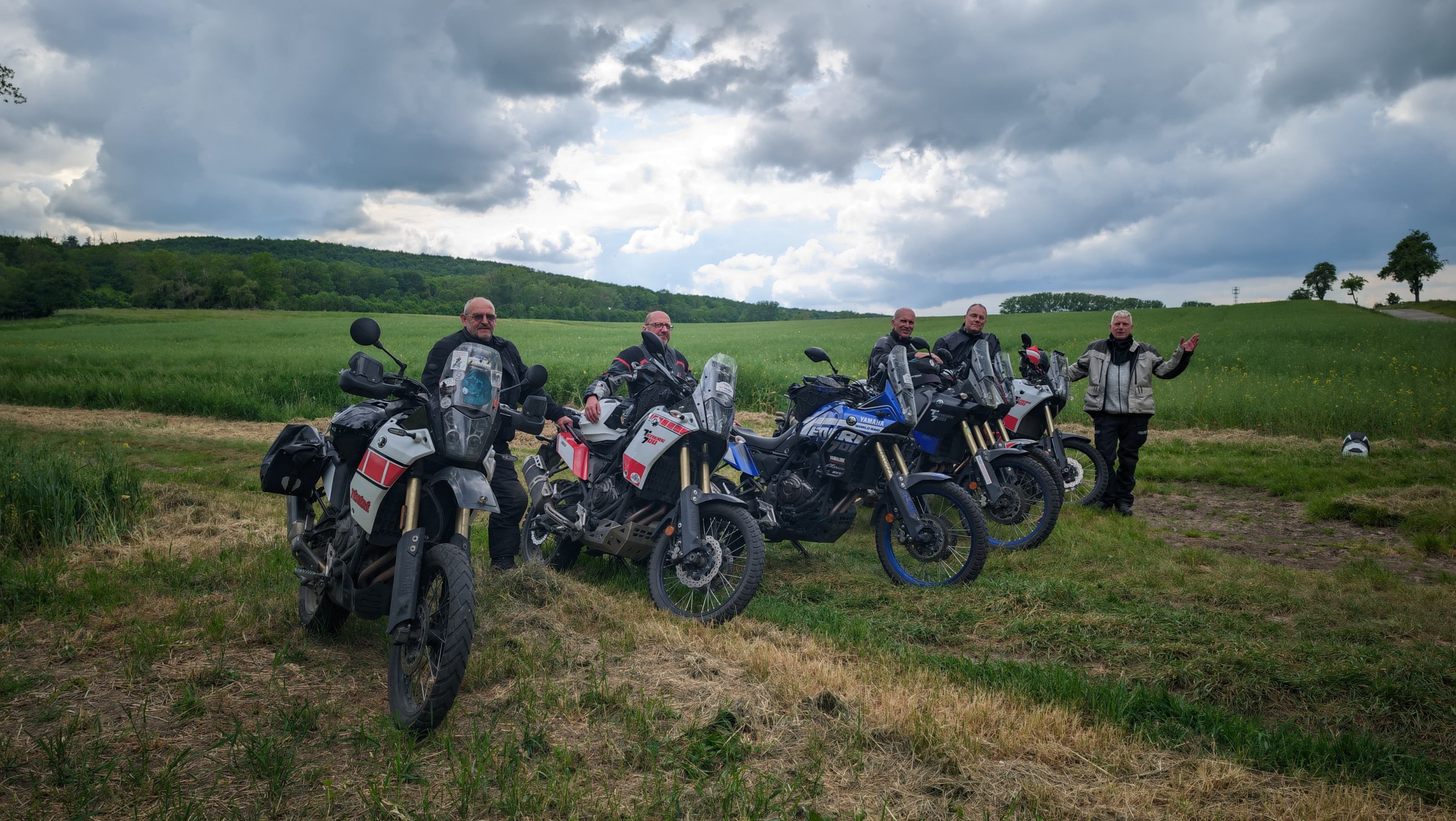 Auch korrekt, sein Sohn hat das Bild gemacht, die blaue Tenere gehört ihm.Ich meine den zweiten von links auch zu kennen! Er war vor 2 oder 3 Jahren mit seinem Sohn am Camping Cran Bosco