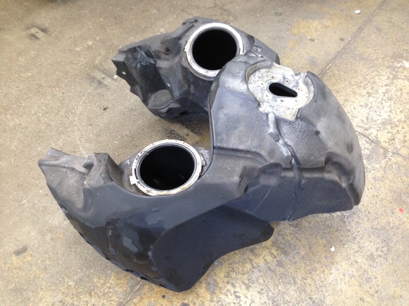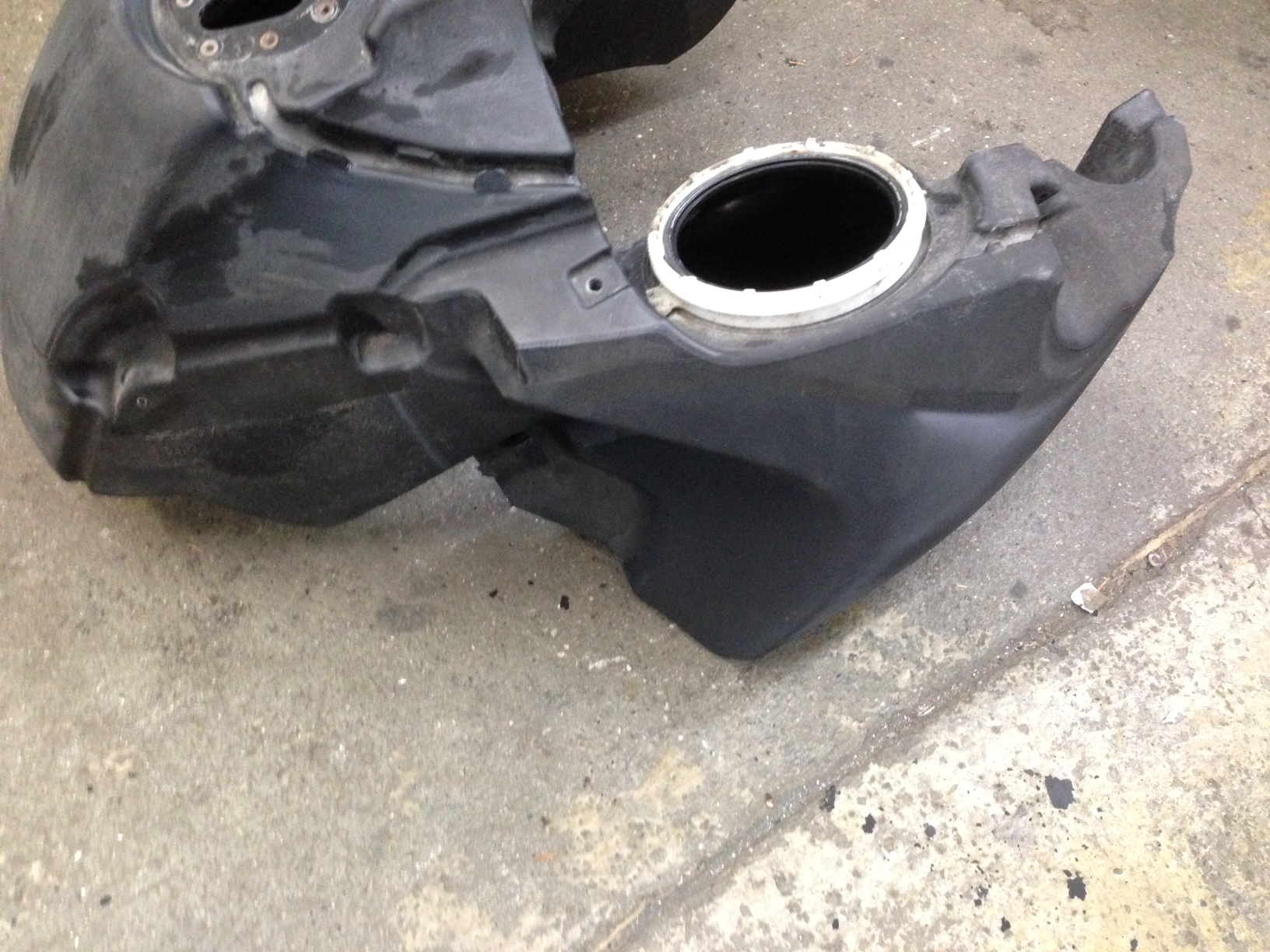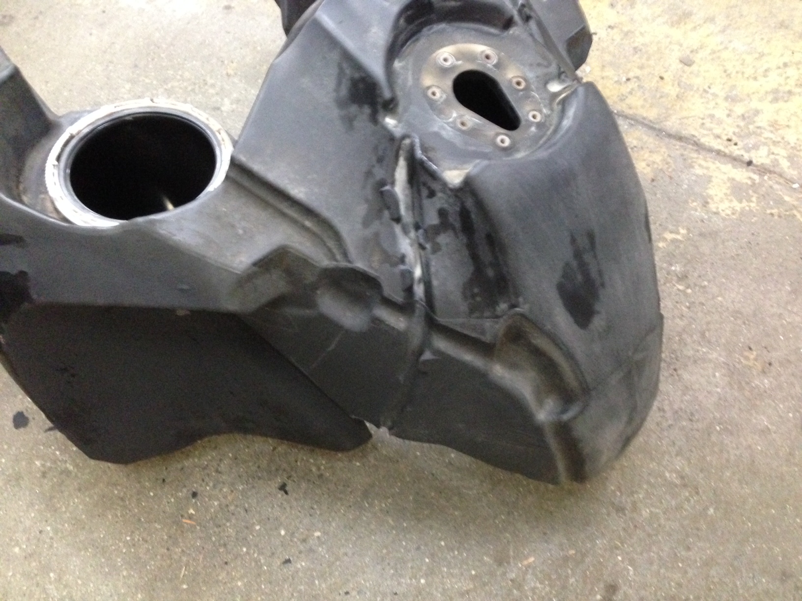 Der Tank hat außen Fehler und Mängel an der Beschichtung.