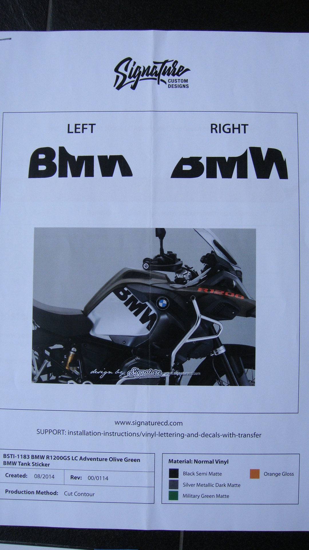 Ich hab daher einen Satz (links/rechts) neue und unbeschädigte Design-Tankaufkleber „BMW" des bekannten Herstellers SIGNATURE CD (Zypern) in oliv matt für die BMW R 1200 GS LC Adventure (K51, ab Bj 2014) abzugeben. Ich wollte diese ursprünglich auf meiner GSA verwenden, habe inzwischen jedoch meinen Tank schwarz foliert und benötige die Aufkleber daher nicht mehr…..