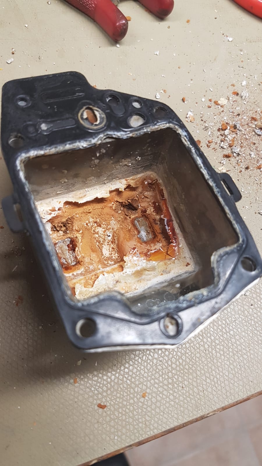 Bilder siehe Anhang. Da hat vielleicht etwas in den Schwimmerkammern gewohnt.