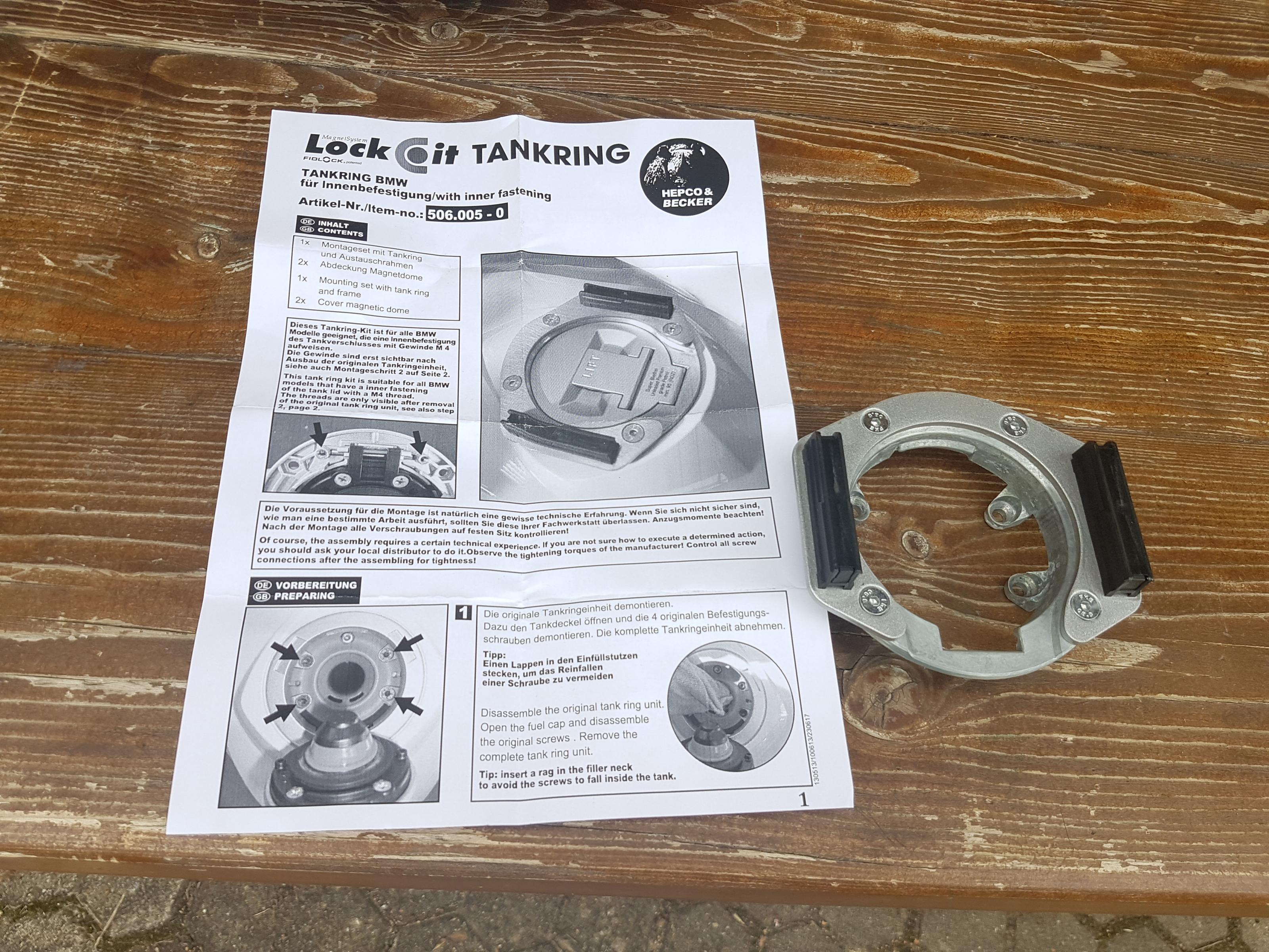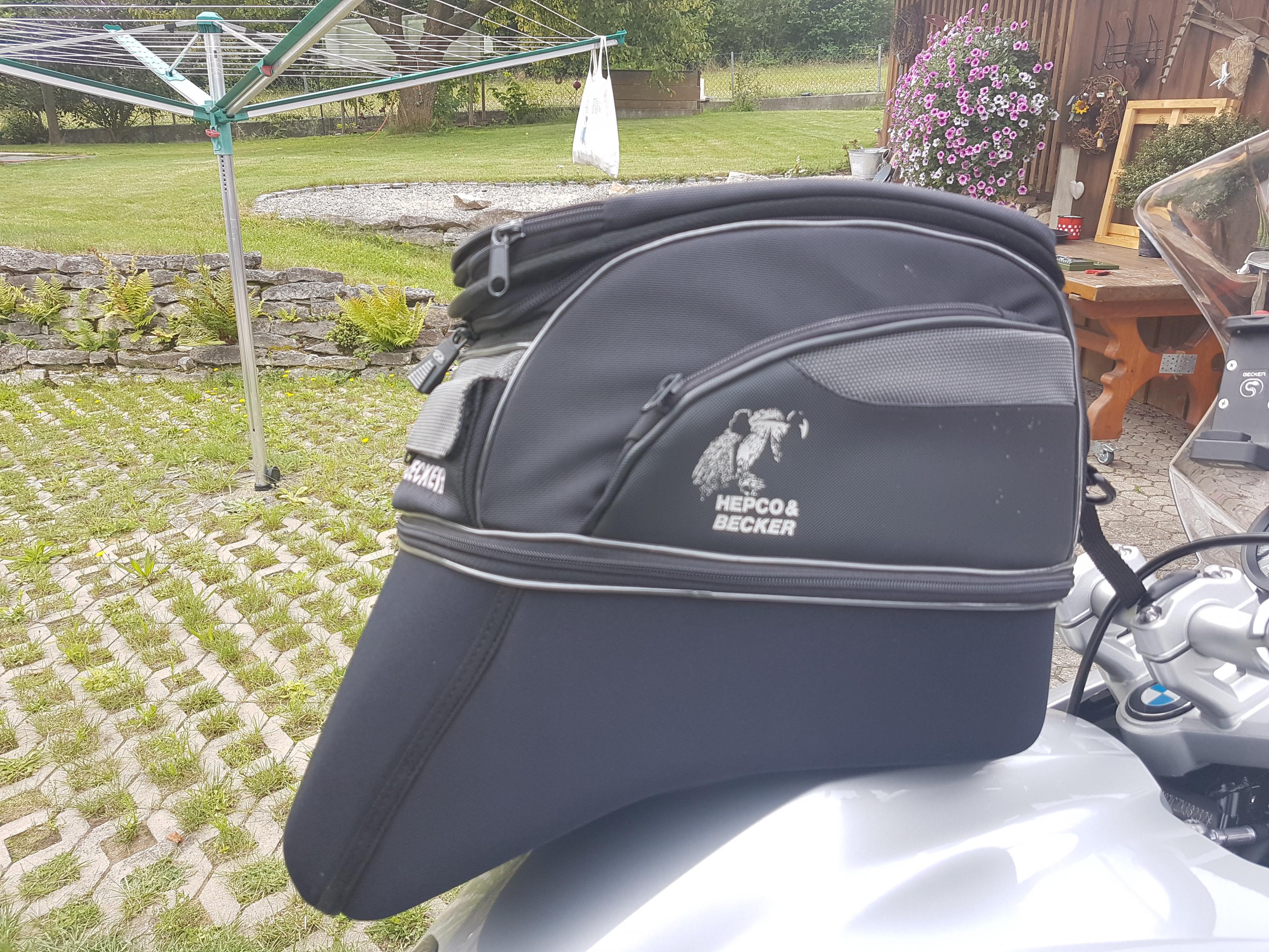 ich verkaufe einen Tankrucksack von Hepco Becker Street Enduro mit einem Tankringadapter 506.005-0 für die luftgekühlte R1200GS.