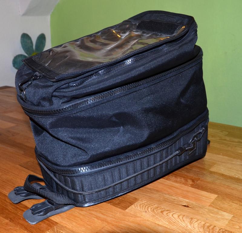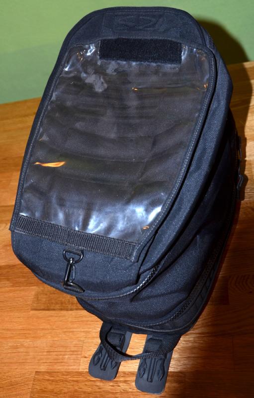 Der Tankrucksack besteht aus 3 Teilen die beliebig kombiniert werden können werden. Im Oberteil ist ein Kartenfach eingearbeitet.