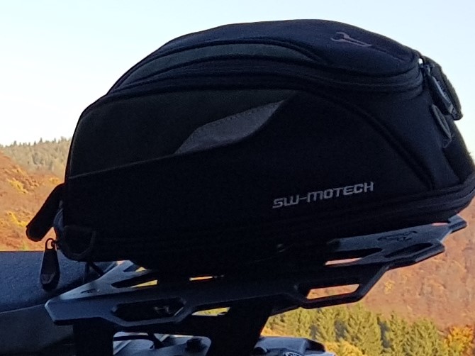 Ich verkaufe einen Tankrucksack, den ich als Hecktasche montiert hatte. Bei mir musste was Größeres her, deswegen kann mich der Rucksack verlassen.