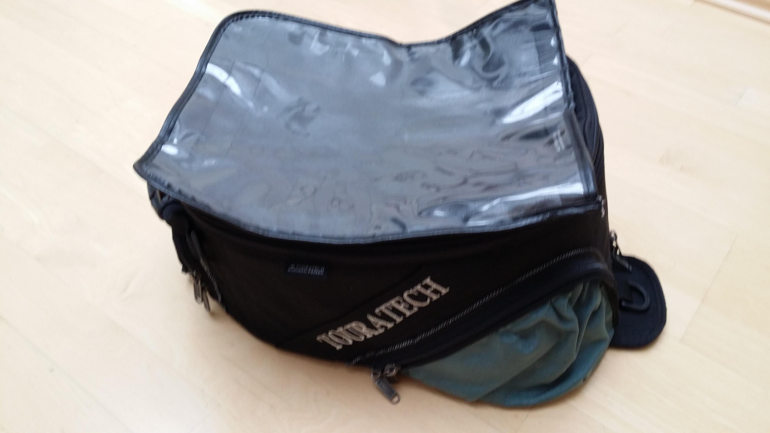 Tankrucksack Touratech: der TR hat keine Mängel. Keine Löcher oder Risse. Jeder Reisverschluss funktioniert einwandfrei. Ich hatte ihn auf einer BMW R1200GS Rallye K25...