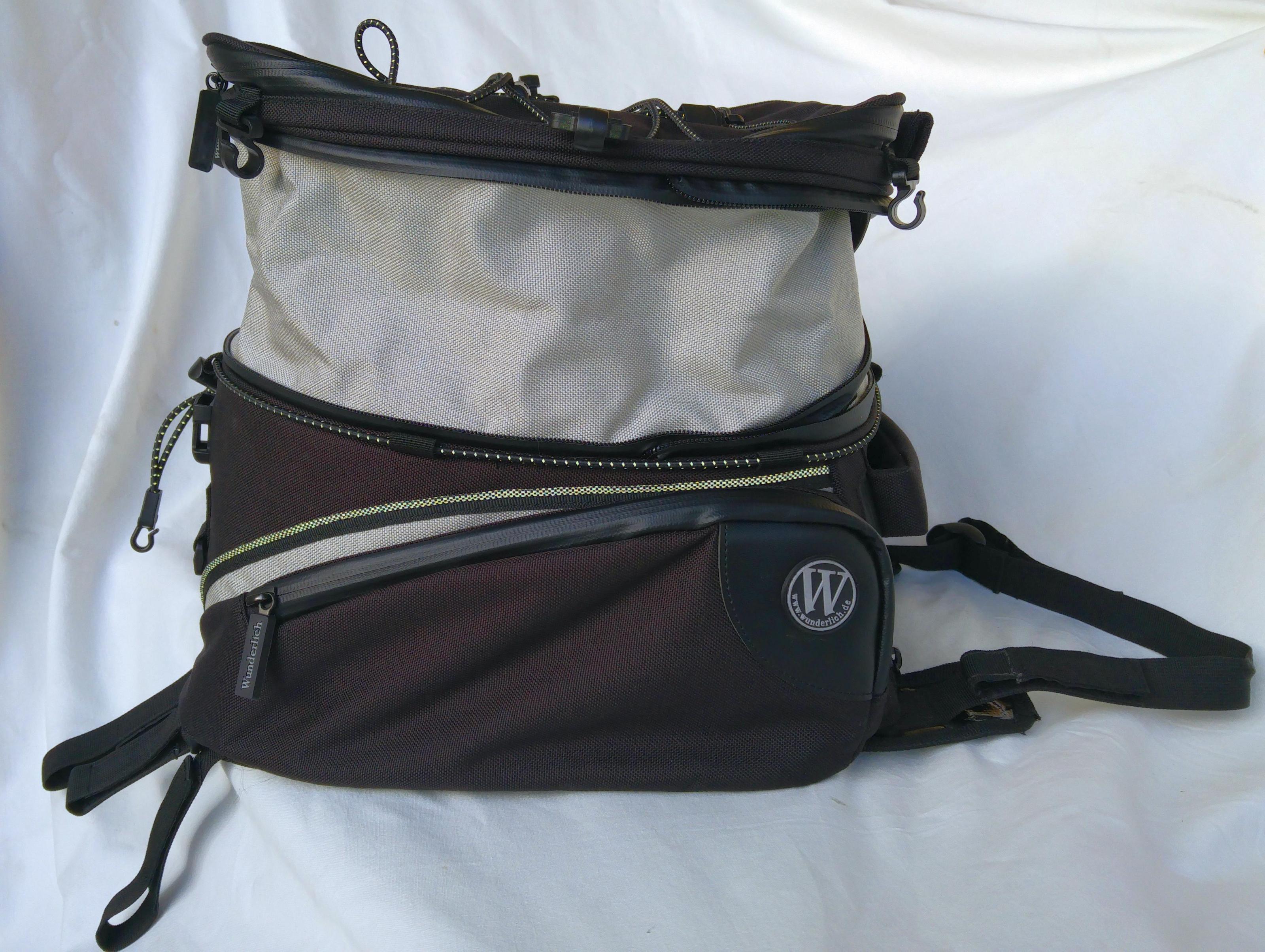 Der Tankrucksack ist in einem absolut neuwertigen Zustand, alles dran, alles geht, auch die Variofunktion.