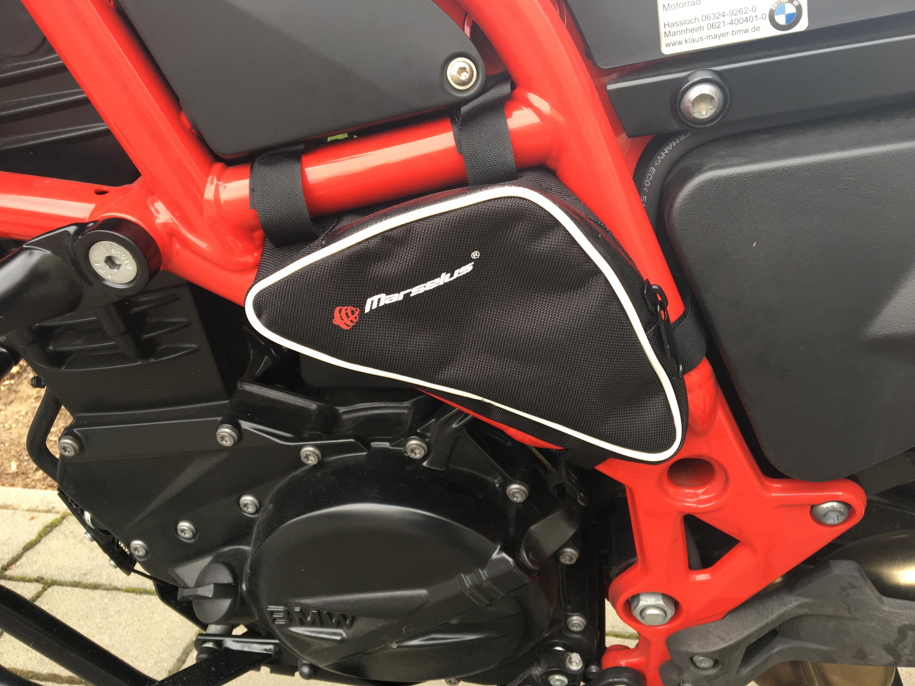 Ich habe mir Taschen für meinen Sturzbügel, für das Rahmendreieck unterhalb der Sitzbank sowie unterhalb des Gepäckträgers bei Marselus gekauft. Insgesamt habe ich inkl Versand 86 Euro bezahlt. Die Bestellung ging via Email.
