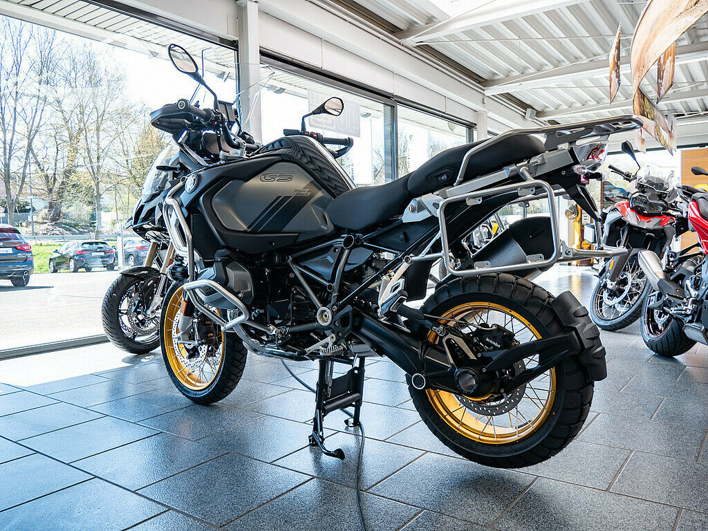 Felgensatz der R1250 GS LC HP (goldfarbene) im Tausch gegen schwarze: Die GS wird Ende April ausgeliefert.