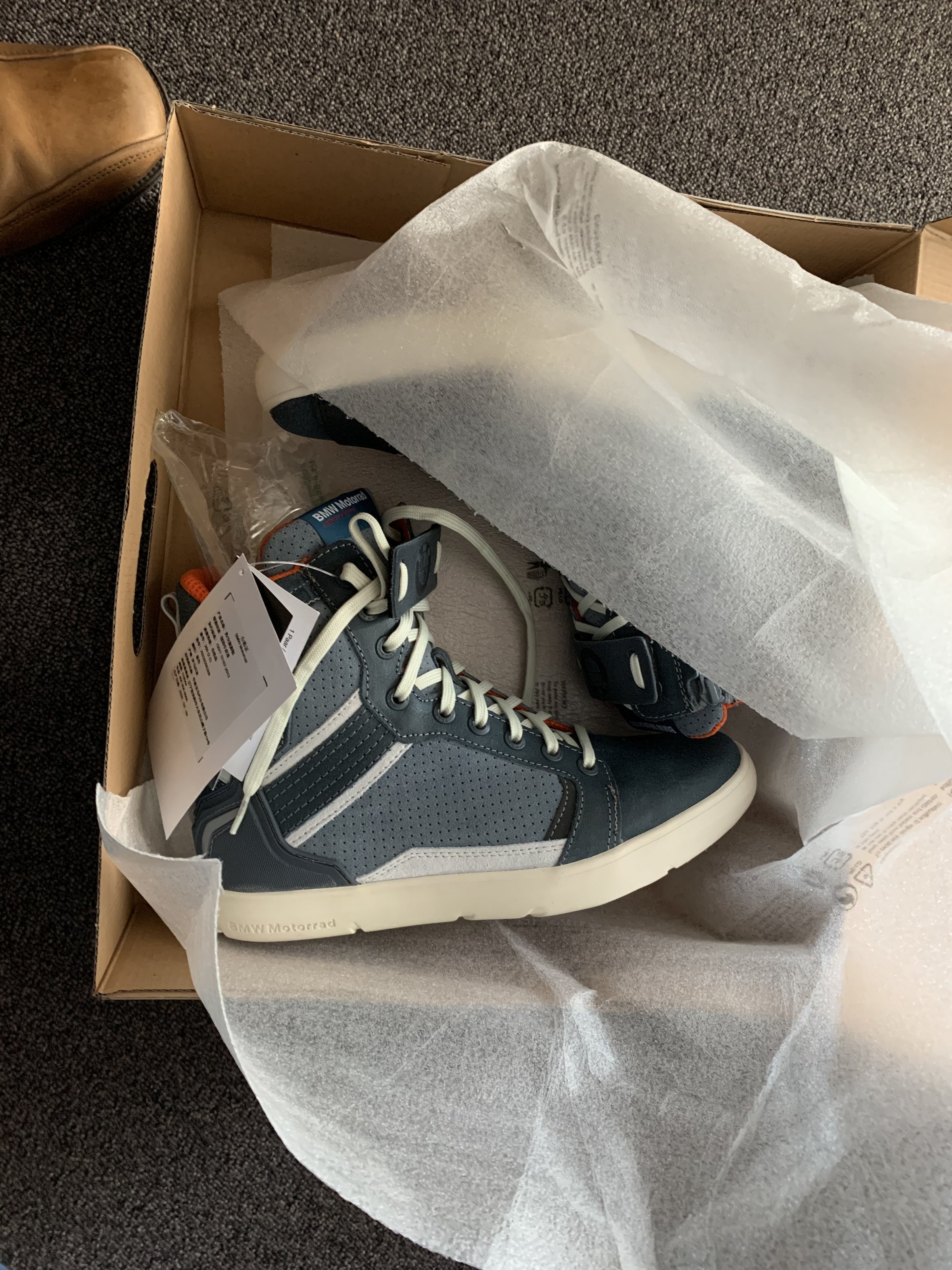 Ich biete ein neues Paar BMW Sneaker in Blau Größe 42 im Tausch gegen Größe 43.