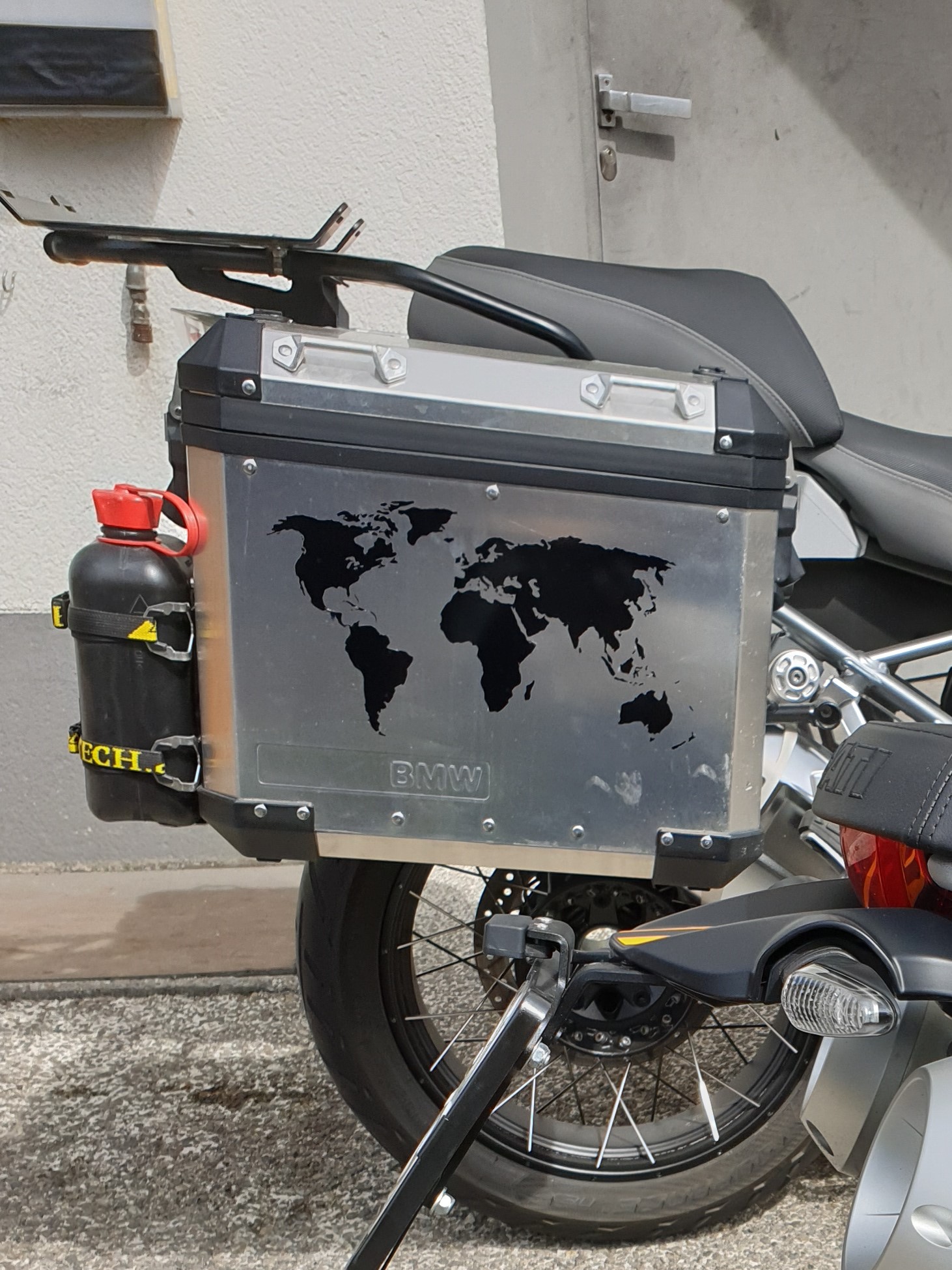Aufgeschraubt auf original BMW-Alukofferträger
