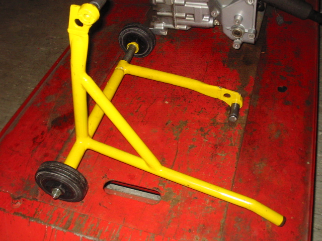 Montageständer ist ein Eigenbau der keine Haltepunkte am Motorrad benötigt