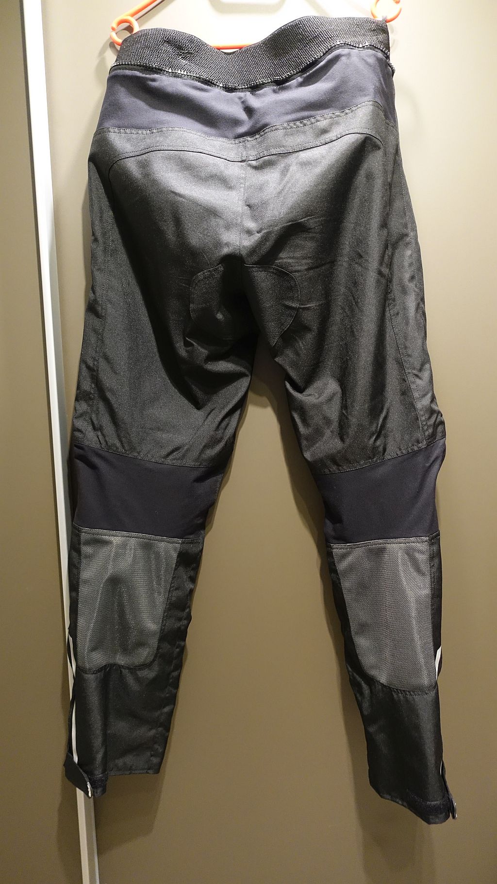 Sie ist ebenfalls neuwertig und nur einmal im Einsatz gewesen. Sie ist mir leider zu kurz. Ich trage normalerweise Größe 52 bzw. L in den Hosen, musste hier jedoch auf XL gehen damit es im Umfang passt und dennoch ist sie mir etwas kurz. Die Knieprotektoren lassen sich in 3 Positionen in der Höhe verstellen.