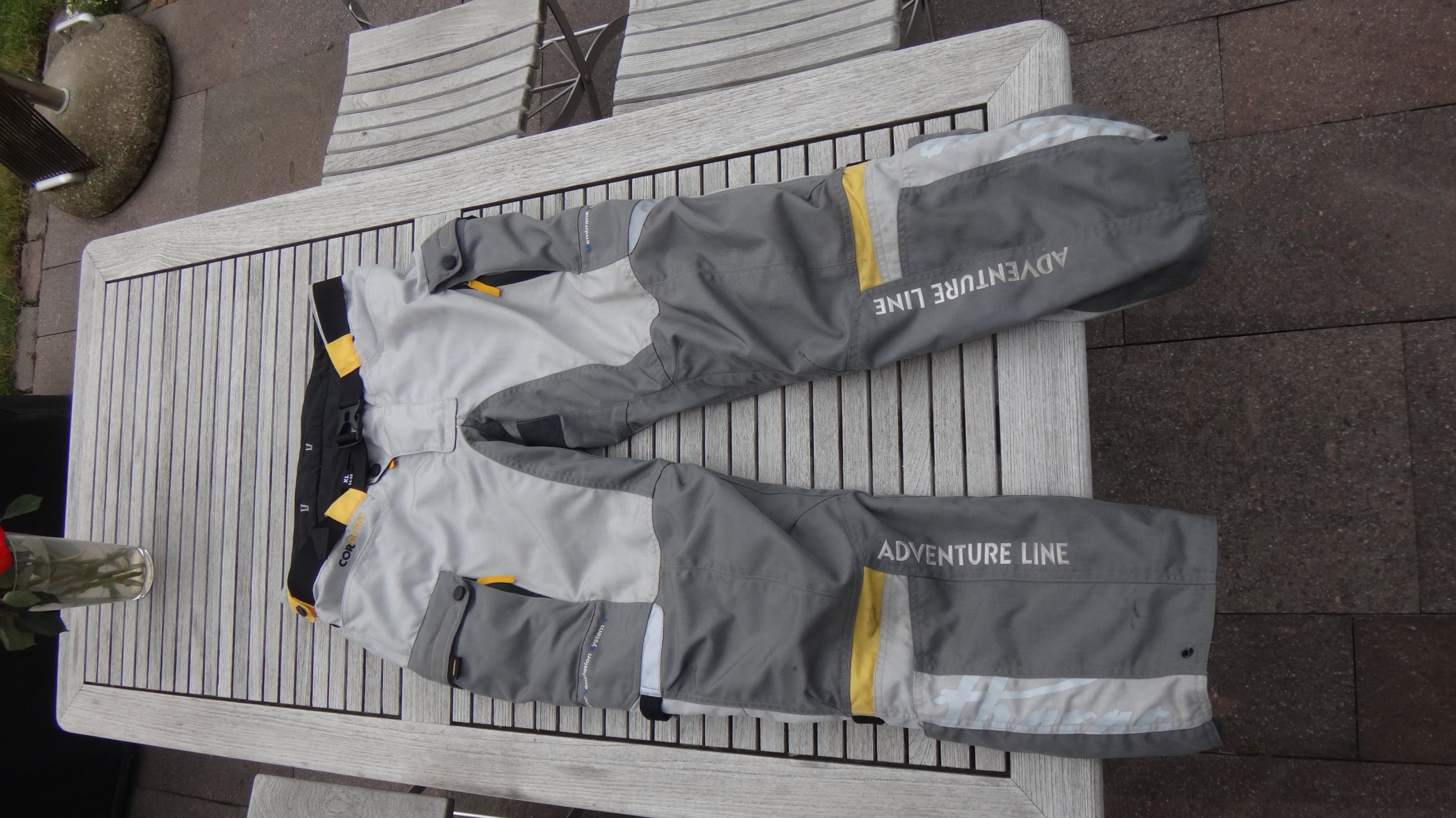 (Aktuell trage ich das Nachfolgemodell, einen FLM-Textilanzug in L-lang für Hose und Jacke, und der sitzt prima.)