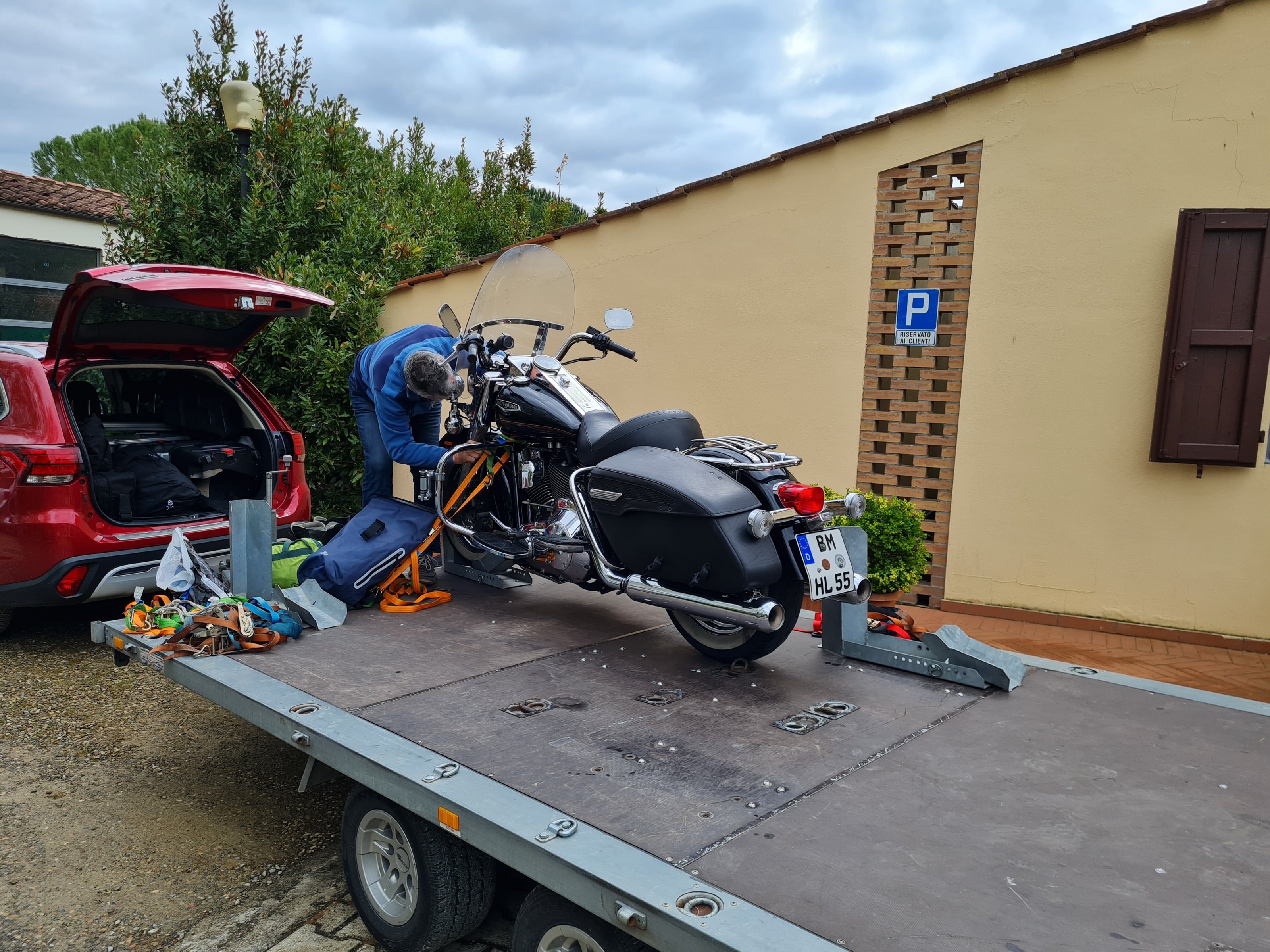 Und die nächste Frage: Wir wollen von München aus mit den Hänger nach Livorno fahren, dann nur mit den Bikes rüber. Der Hänger soll mit dem Auto auf dem Festland bleiben. Habt ihr einen Tipp, wo man ein Auto mit Anhänger für 14 Tage kostengünstig stehen lassen kann? Entweder in der Nähe von Livorno, oder 100 km nördlicher an der italienischen Küste. Das kann auch ein günstiges Hotel sein, wo wir vor der Fähre nochmal eine Nacht schlafen.
