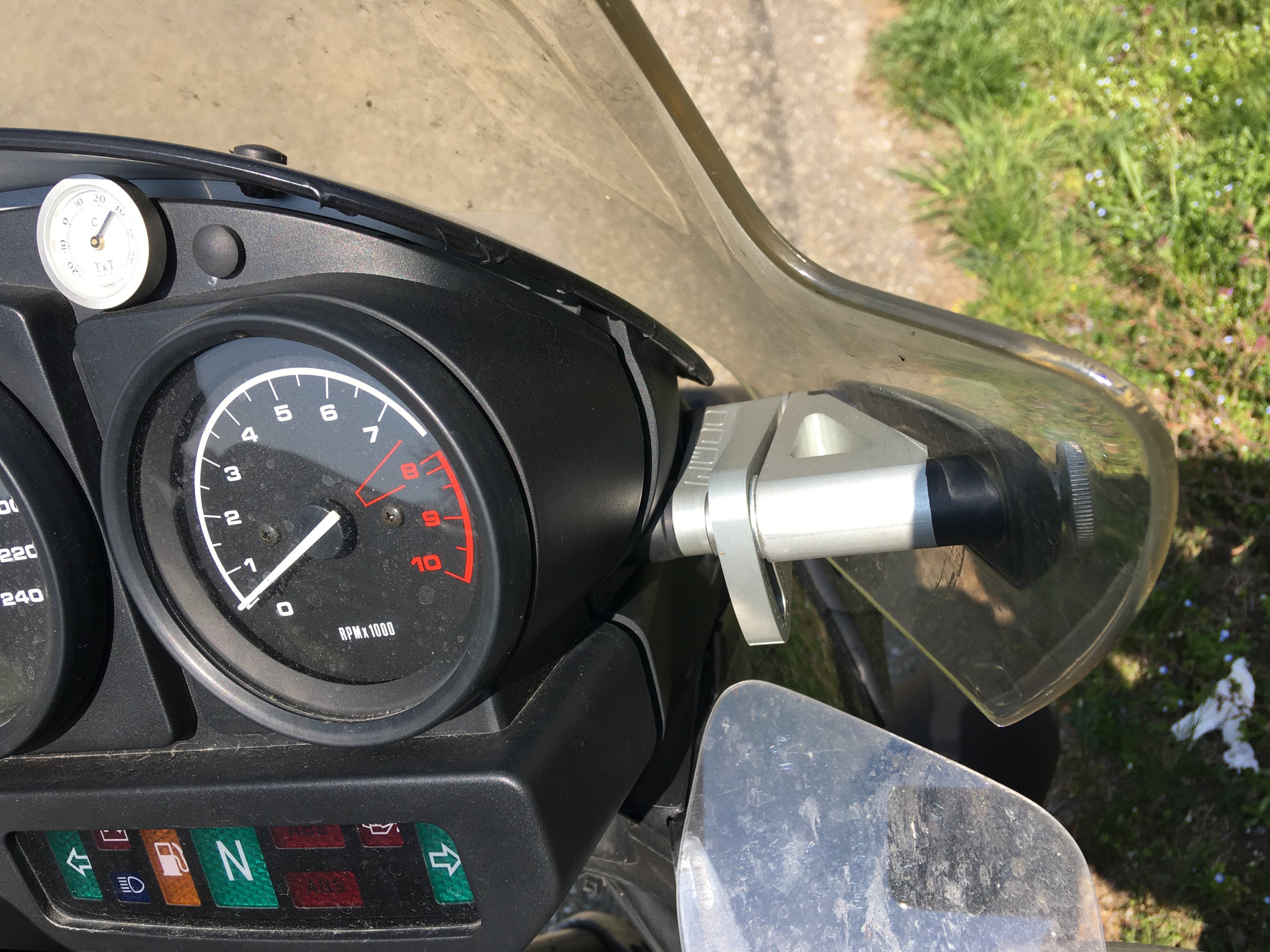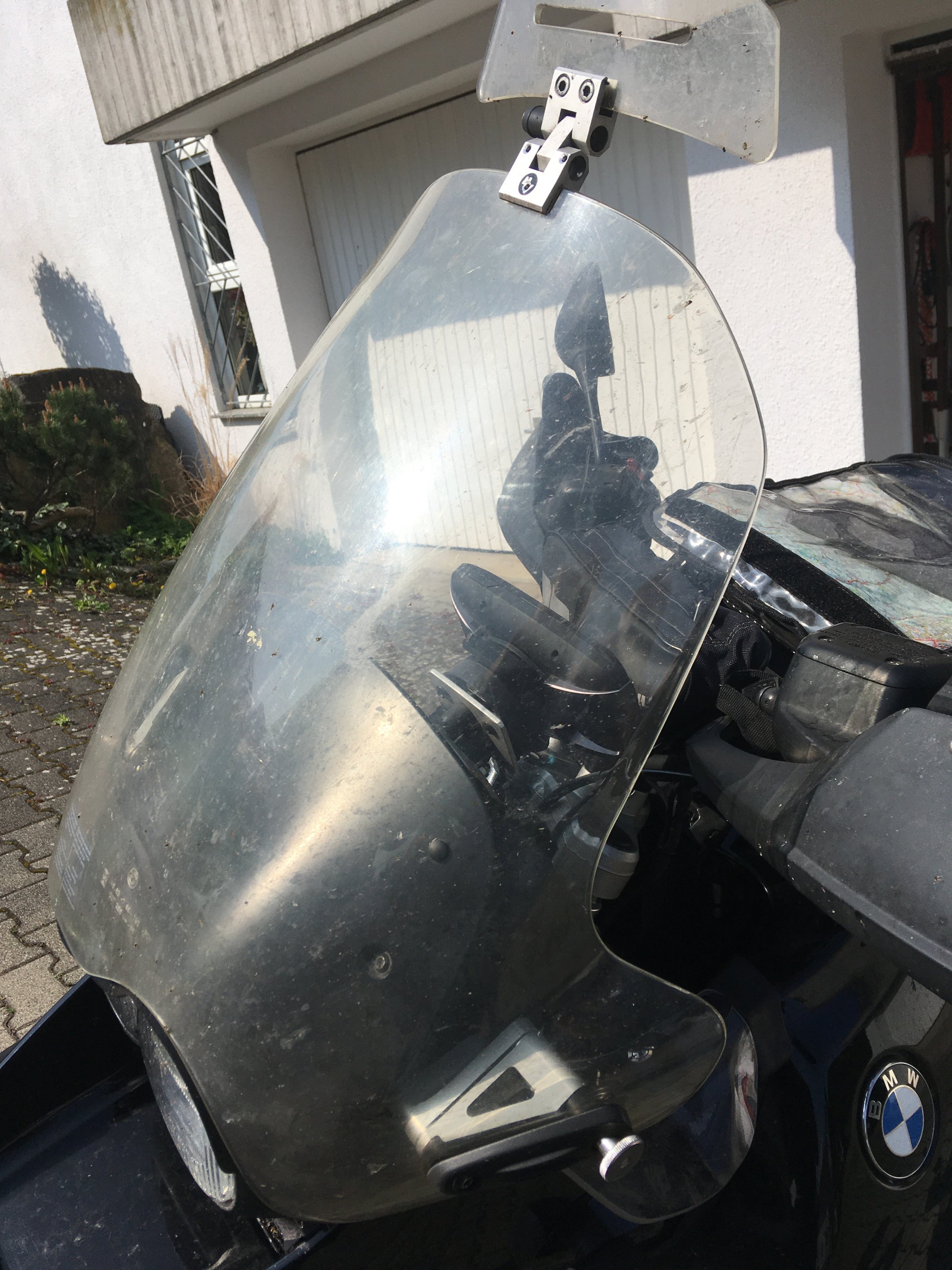 Falls Du schon im Echtbetrieb gewesen sein solltest, hast Du evtl. schon gemerkt, daß das große Windschild i. V. m. der verbreiterten ADV-Halterung eine recht labberige Konstruktion ist.