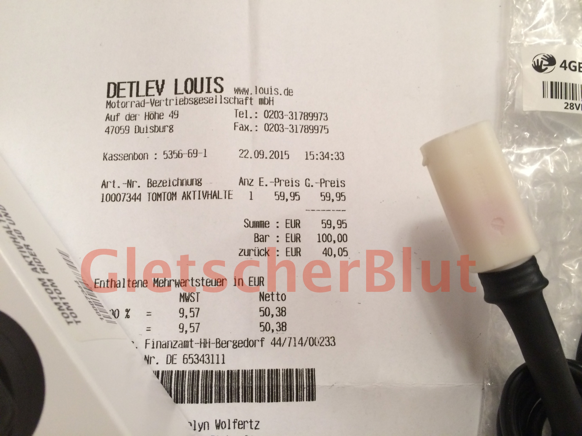 Inkl. Kopie Kaufbeleg Louis vom 22.9.2015.