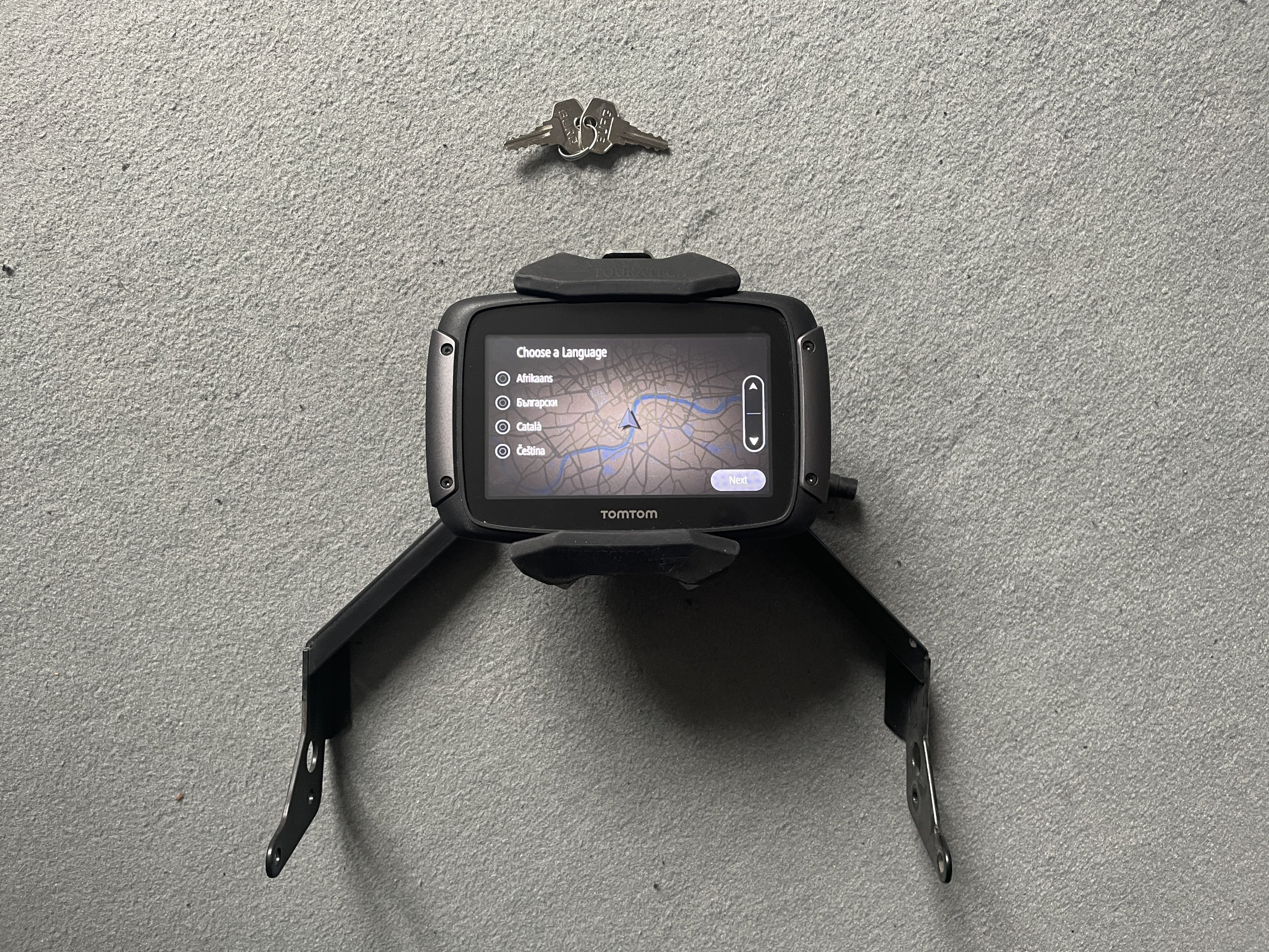 - GPS-Anbauadapter von Touratech (Haltebügel über dem TFT)