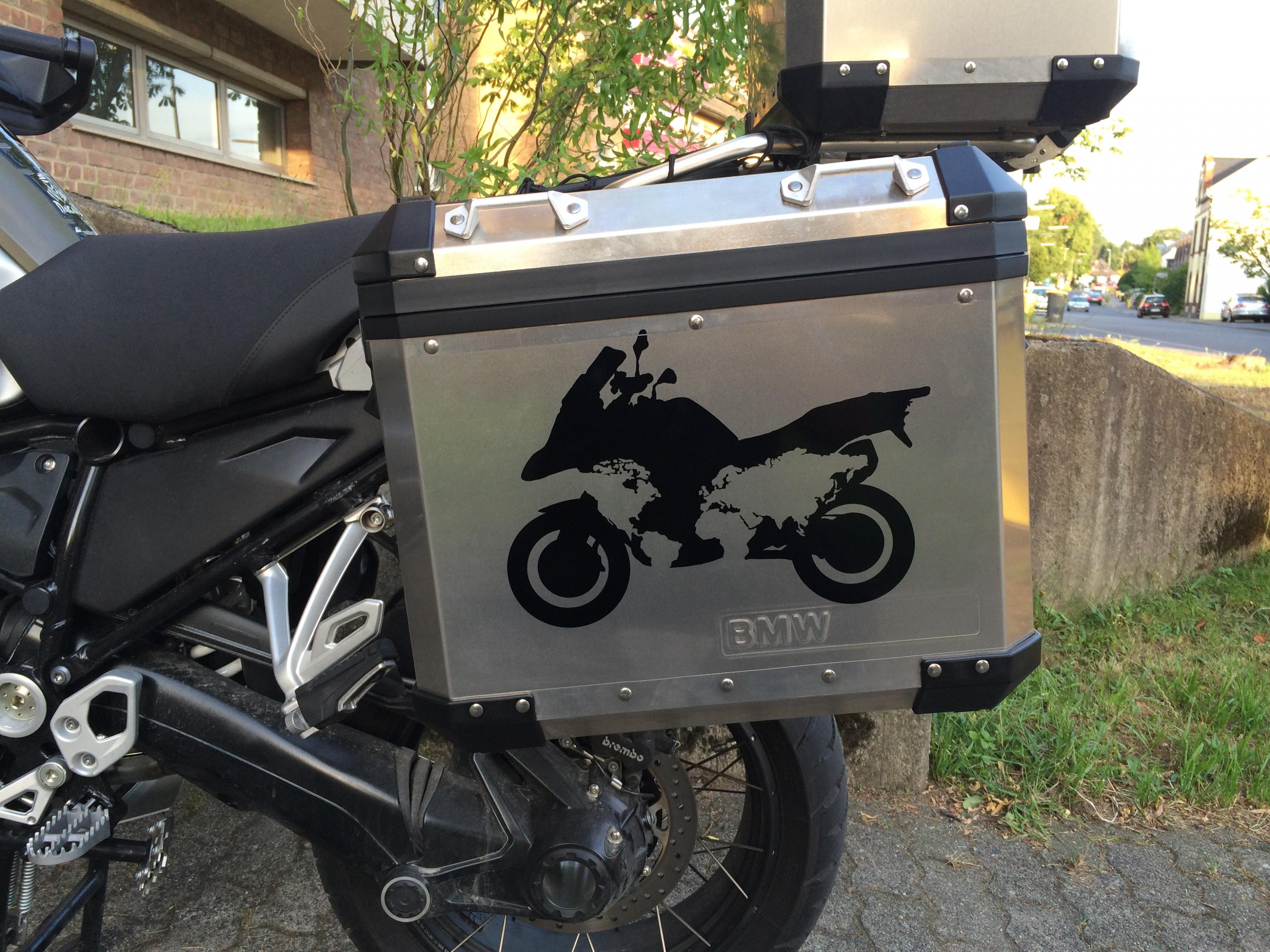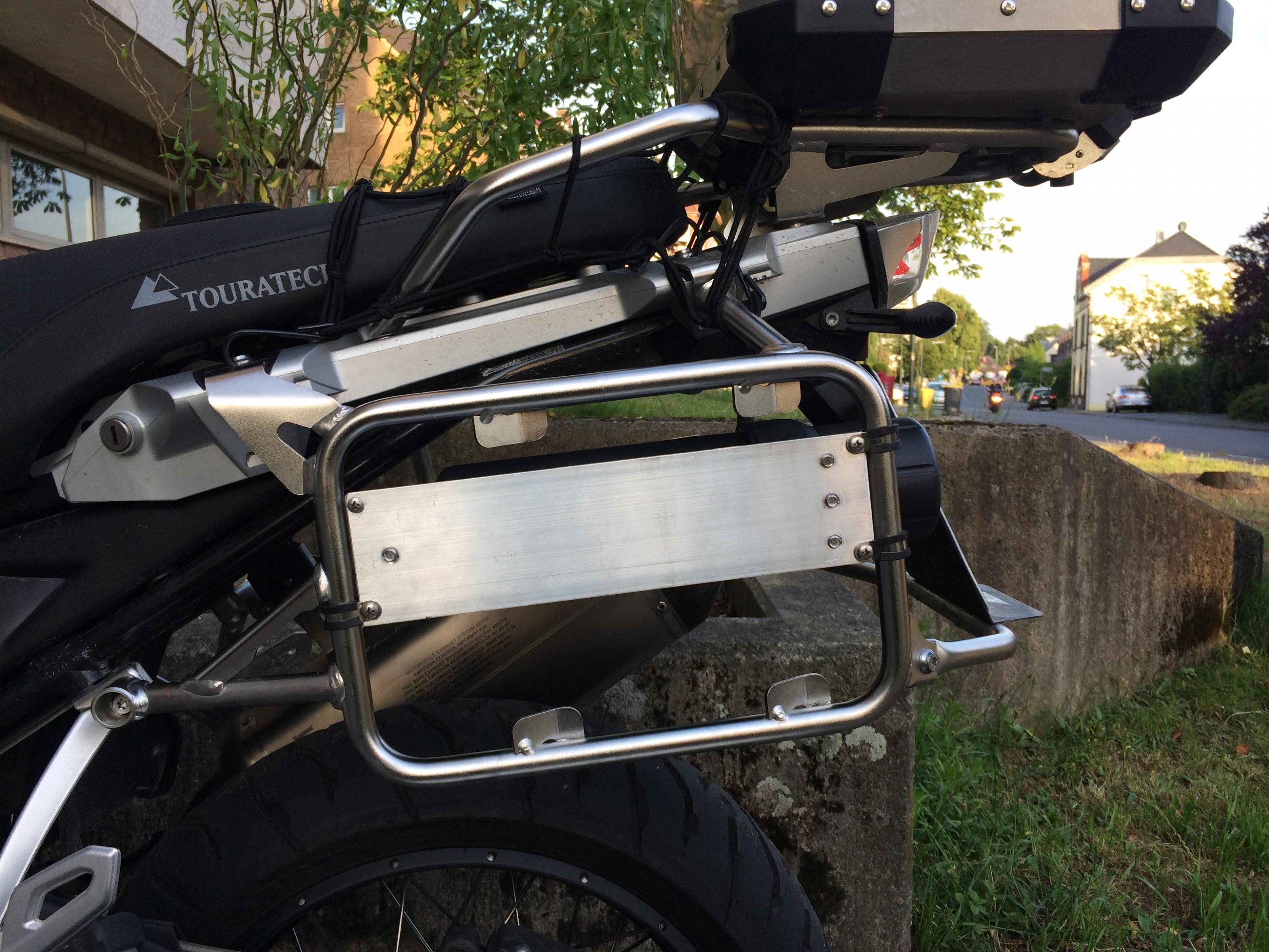 Montiert war sie an meiner R1200GS Adventure LC. Sollte aber auch an die. Vorgänger GSA mit den original BMW Kofferhalter passen.