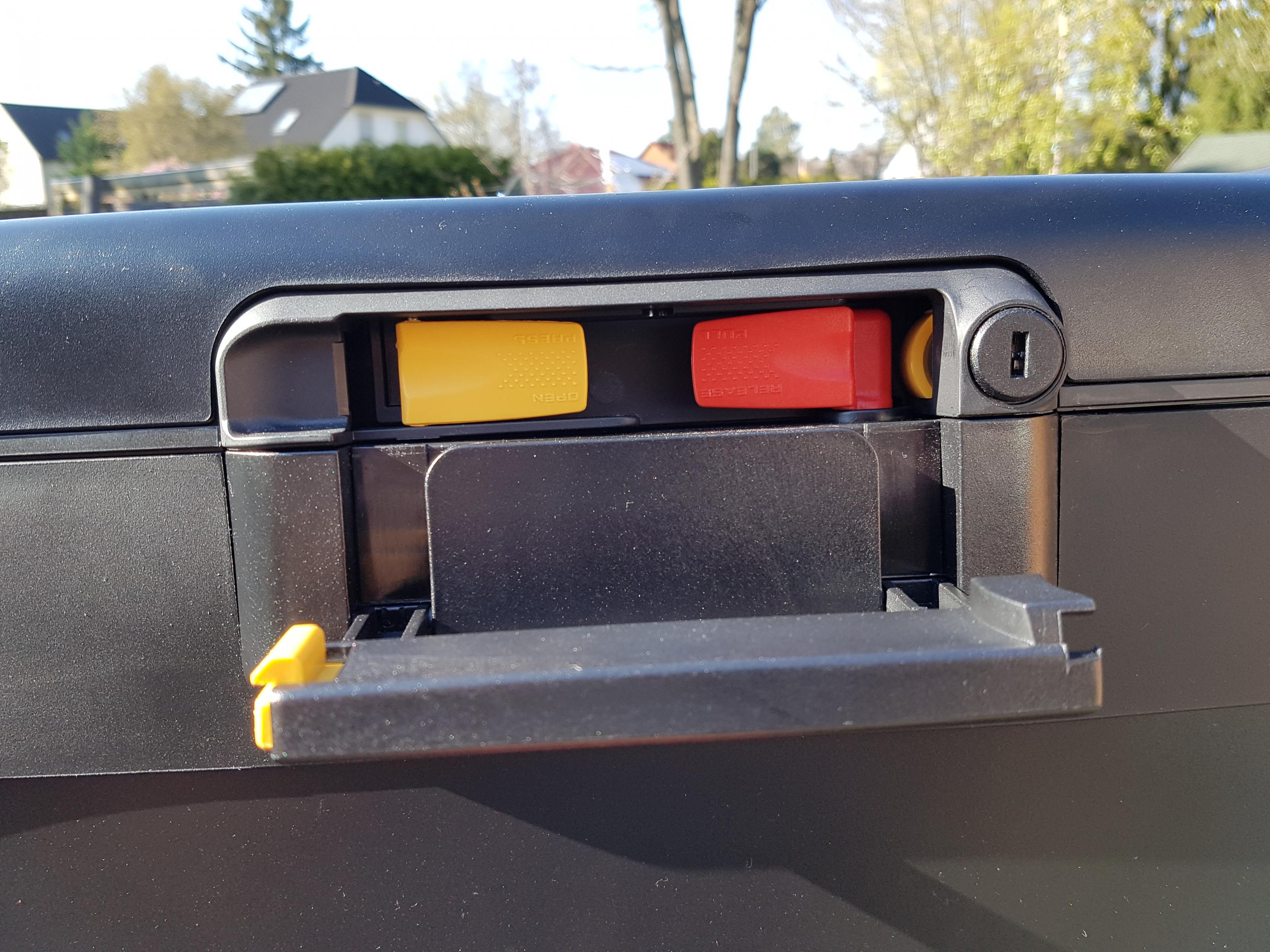 Nu muß jeder, der mein Topcase bedienen will, einen Kopfstand machen, damit er weiß, welcher Griff/Hebel wofür gut ist...