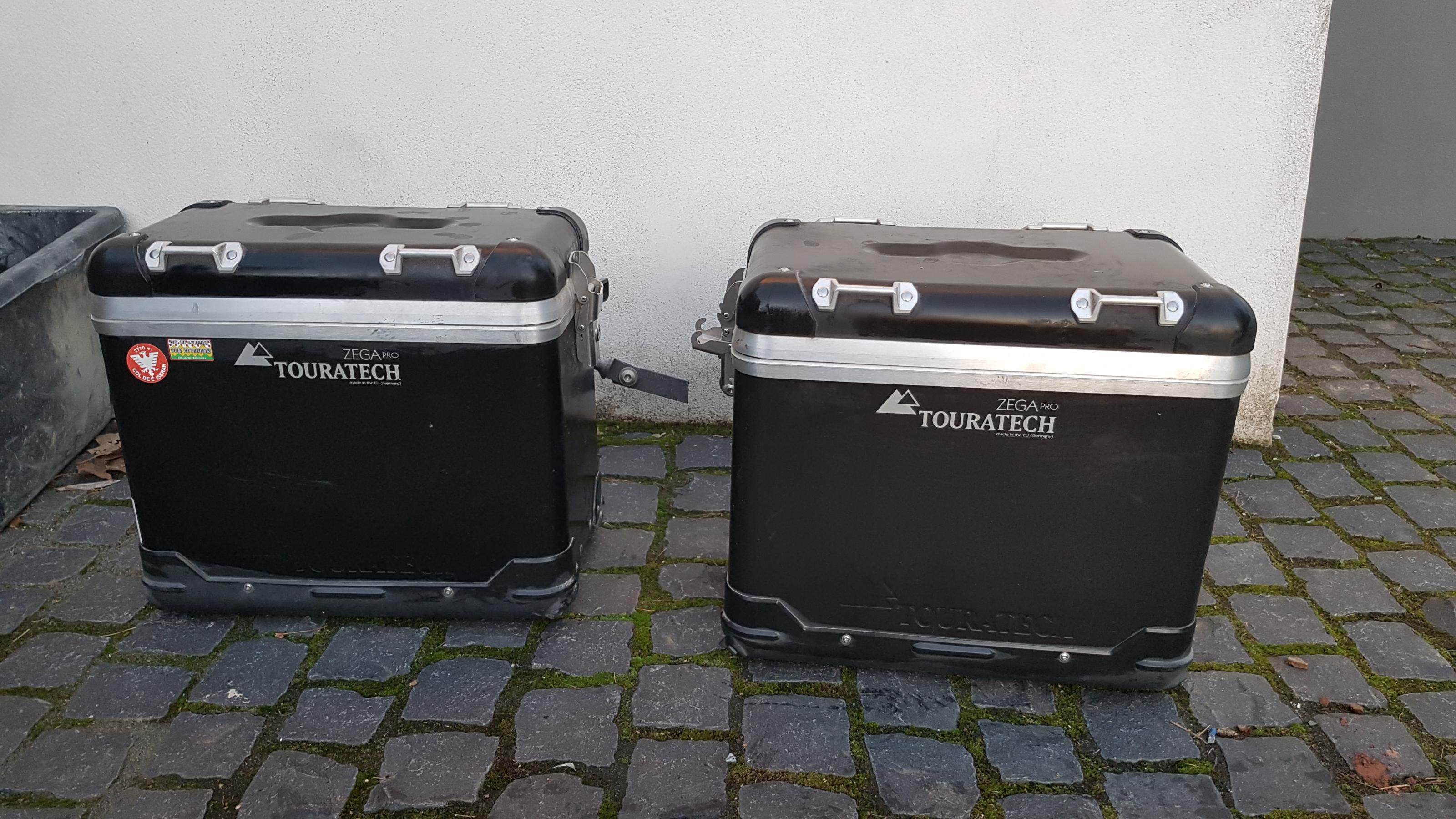 Biete 2 Alu Koffer von Touratech in schwarz. 37 und 45 Liter. Halterungen angebaut für Hepco und Becker Koffer Träger jedoch OHNE Koffer Träger. Keine Beschädigungen und dicht. Ohne Schlösser. 3 Jahre alt