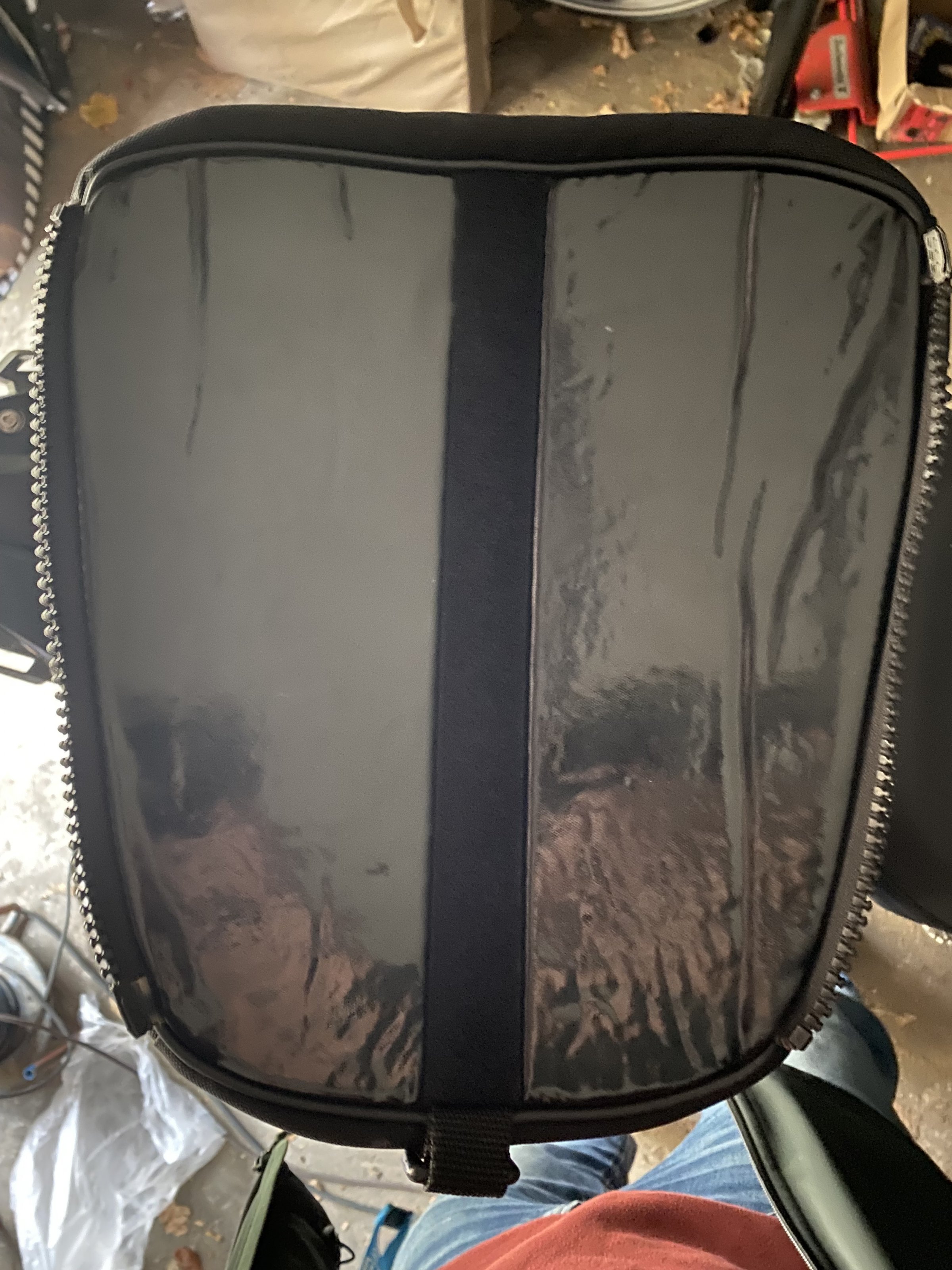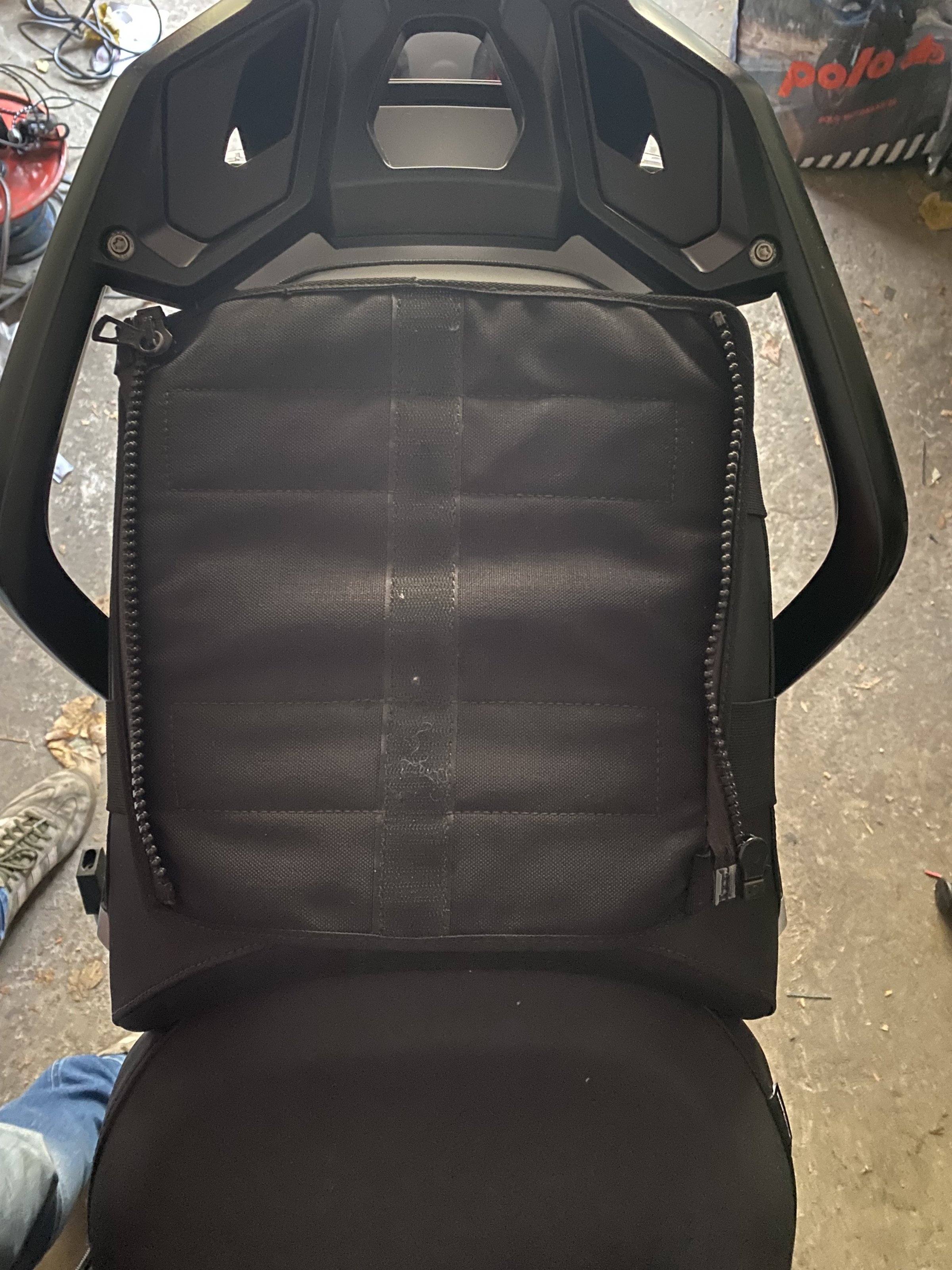 Sie wird auf der Sitzbank montiert und Mittels Reißverschlüssen befestigt.