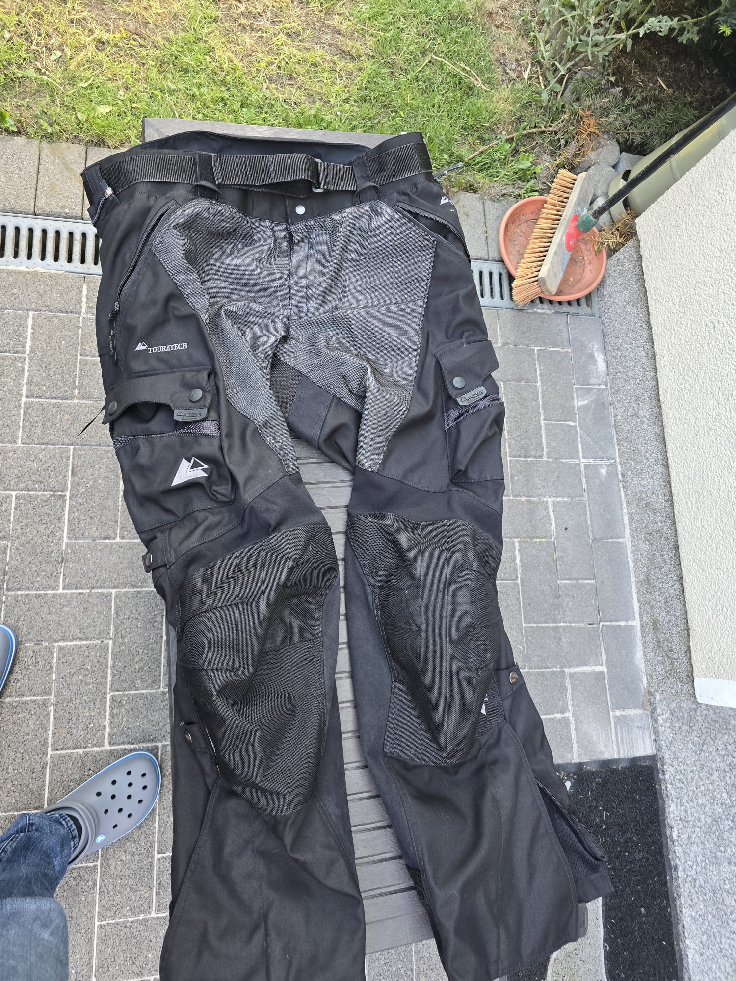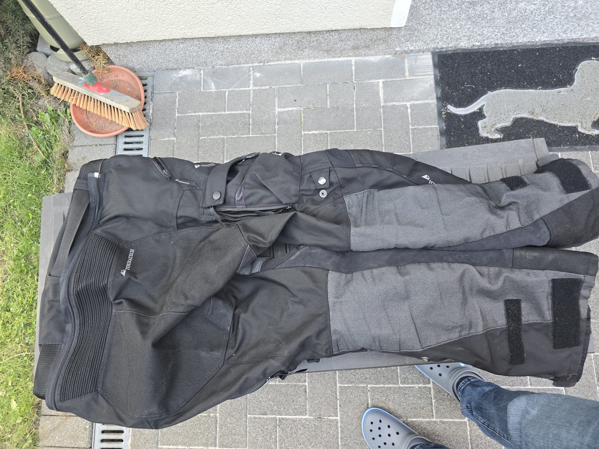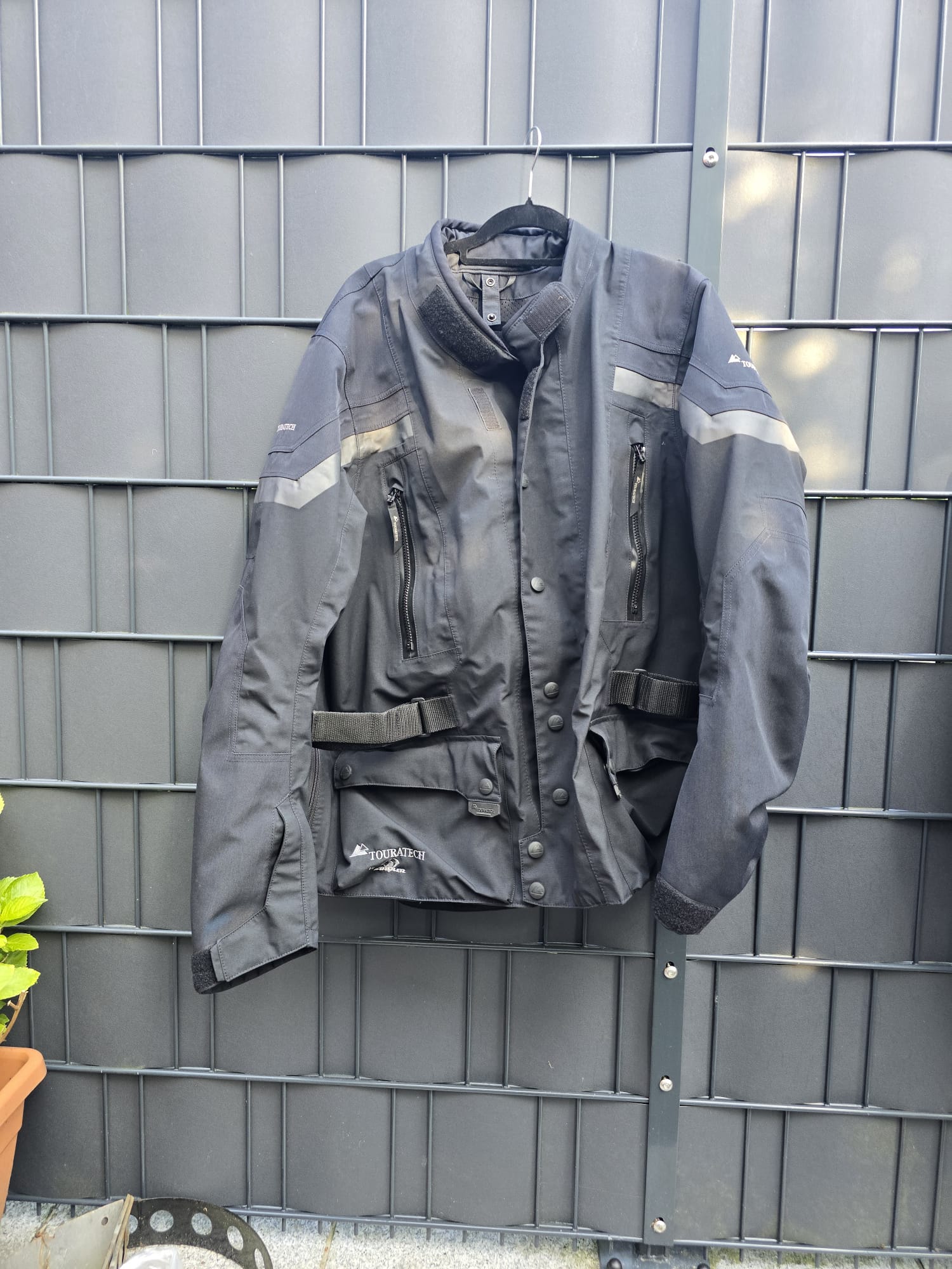 Es handelt sich um eine kaum getragene 3-Lagen-Laminat Kombi von Touratech in Größe 64 (Jacke) und Größe 62 (Hose).