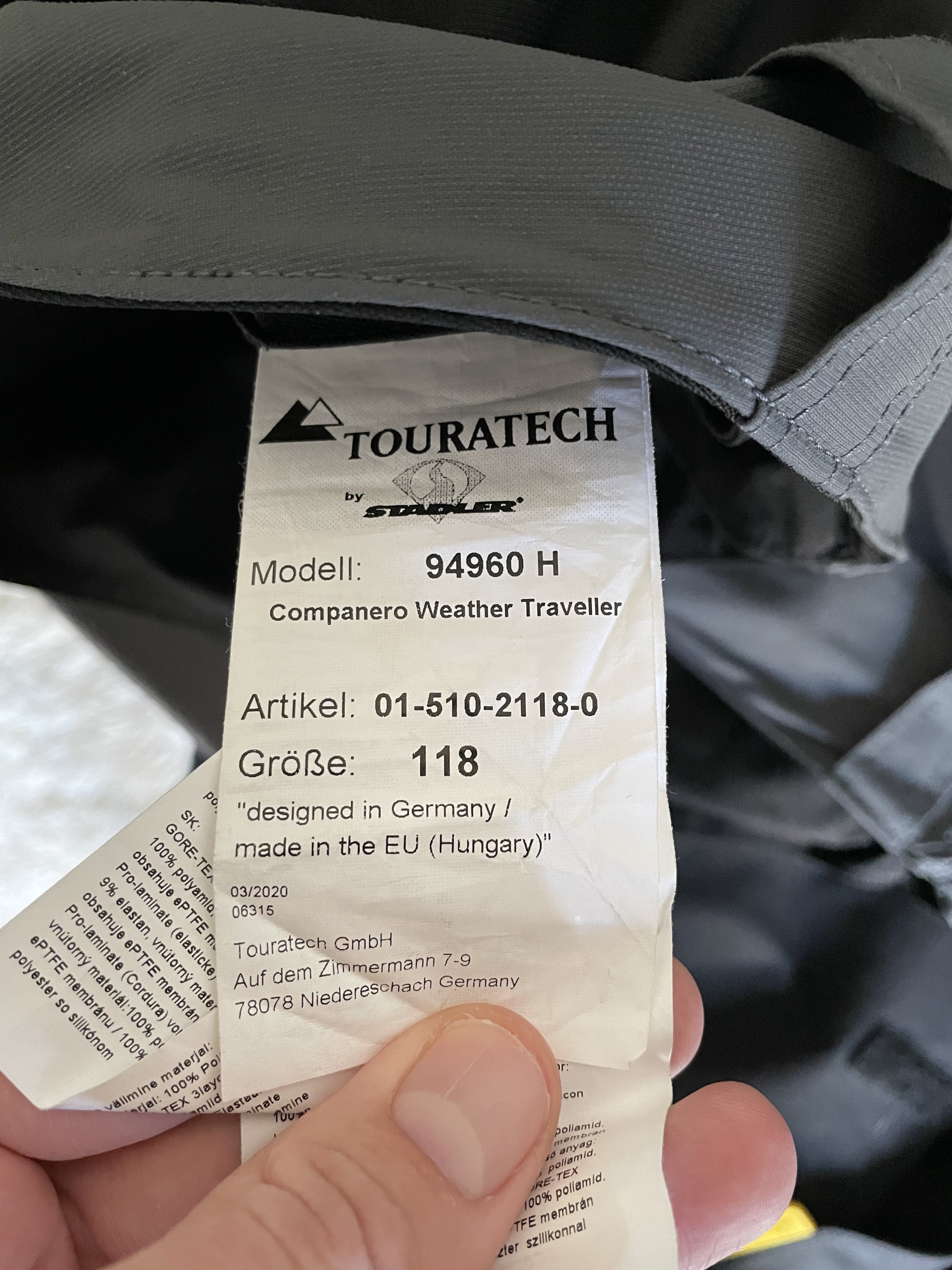 Die Hose habe ich gemeinsam mit der jacke (in meiner anderen Anzeige) Anfang Juni 2021 direkt bei Touratech gekauft - Rechnung vorhanden.