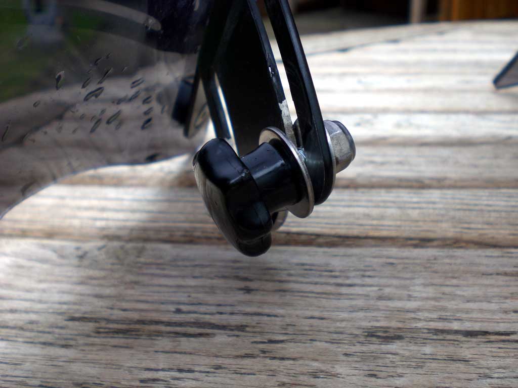 1. zur leichteren Verstellung unterwegs zwei der vier Schrauben zur Verstellung durch Knebelschrauben ersetzt