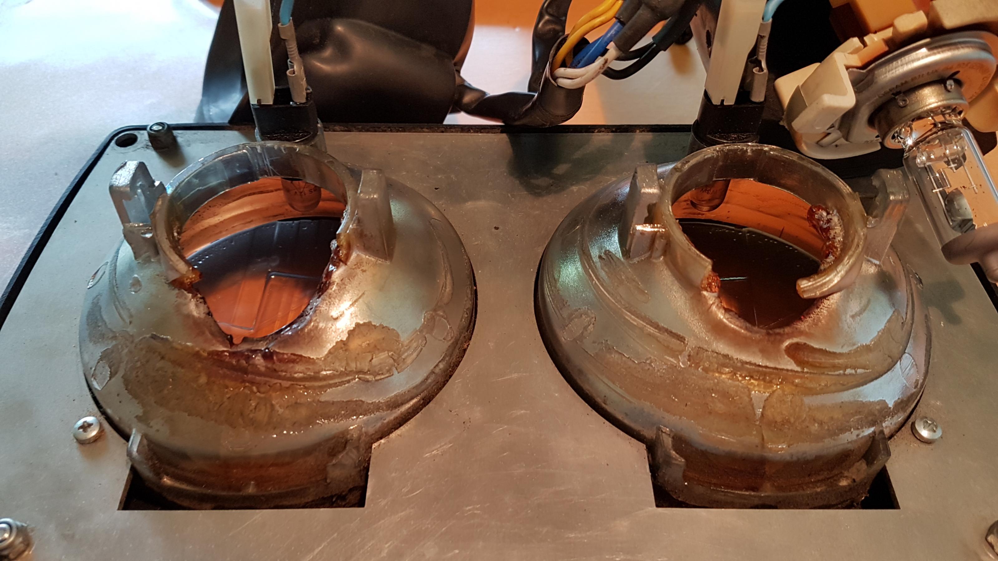 Habe gerade festgestellt, dass der Reflektor hinten angeschmolzen ist (Danke, rainmoto!). Hatte die Gummis noch nie ab und der Scheinwerfer funktionierte bis zum Ausbau auch problemlos und ne Birne musste ich nie tauschen.