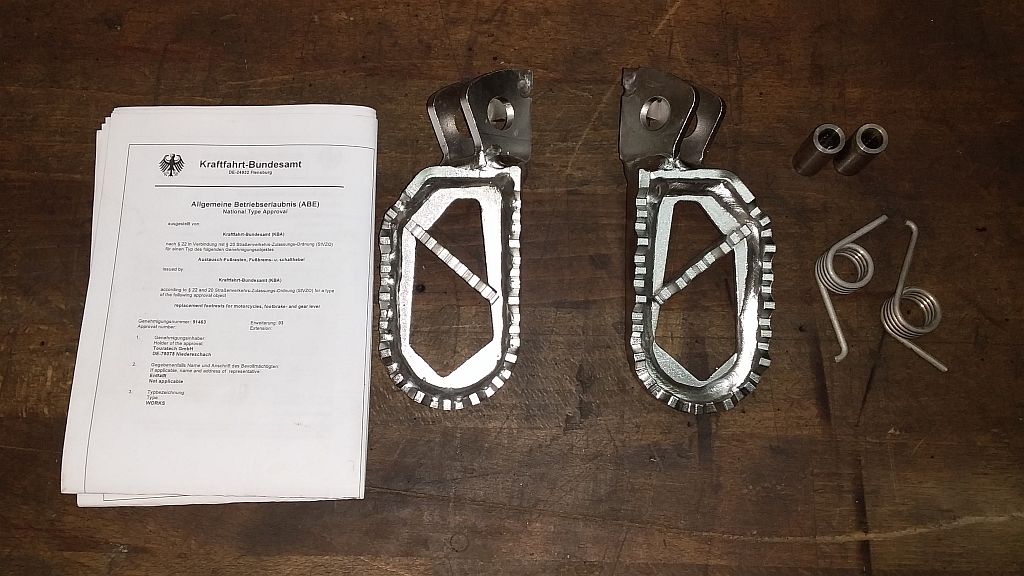 Ich biete hier einen Satz Fernreisefußrasten in niedriger Ausführung von Touratech an. Da ich mit meiner GS kaum offroad unterwegs bin habe ich auf die etwas bequemeren Fußrasten einer R100 gewechselt.