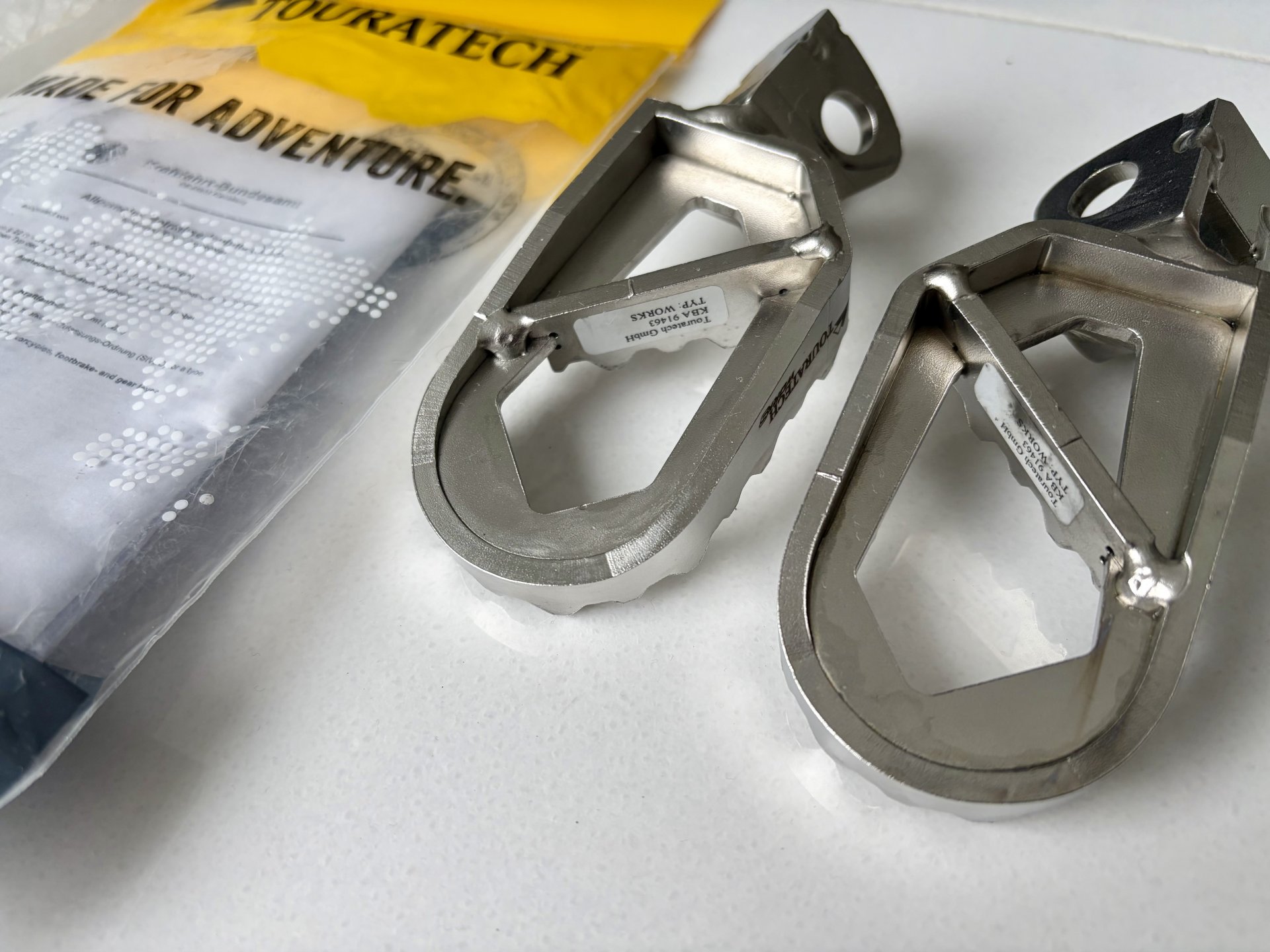 ich biete hier einen top Satz Touratech Fernreisefussrasten WORKS in der Ausführung niedrig zum Kauf an. Waren bei mir an einer F900GS montiert, aber entsprechend mit ABE