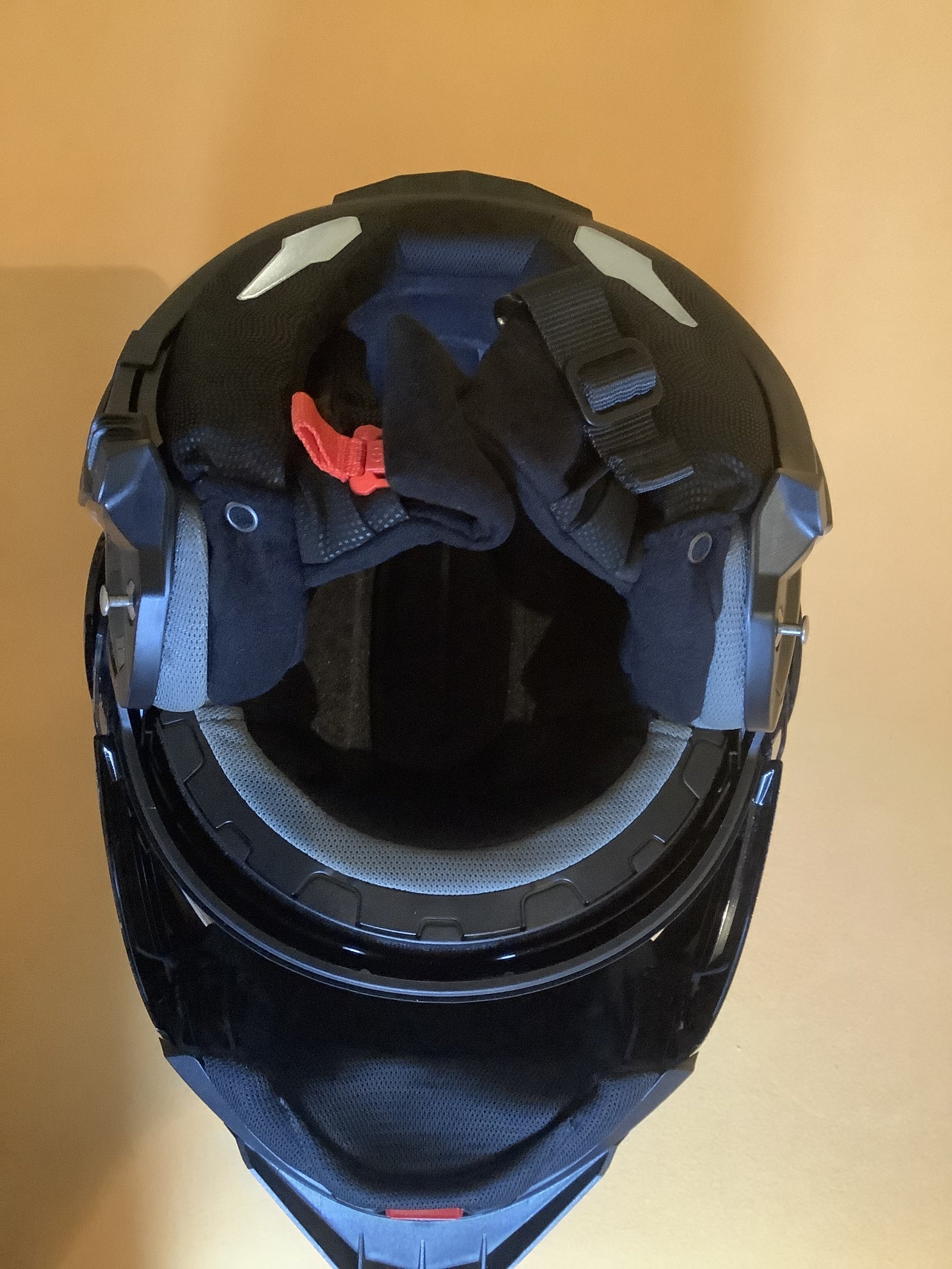 Der Helm hat keinerlei Beschädigungen, ist nicht heruntergefallen und hat auch keinen Unfall mitgemacht.