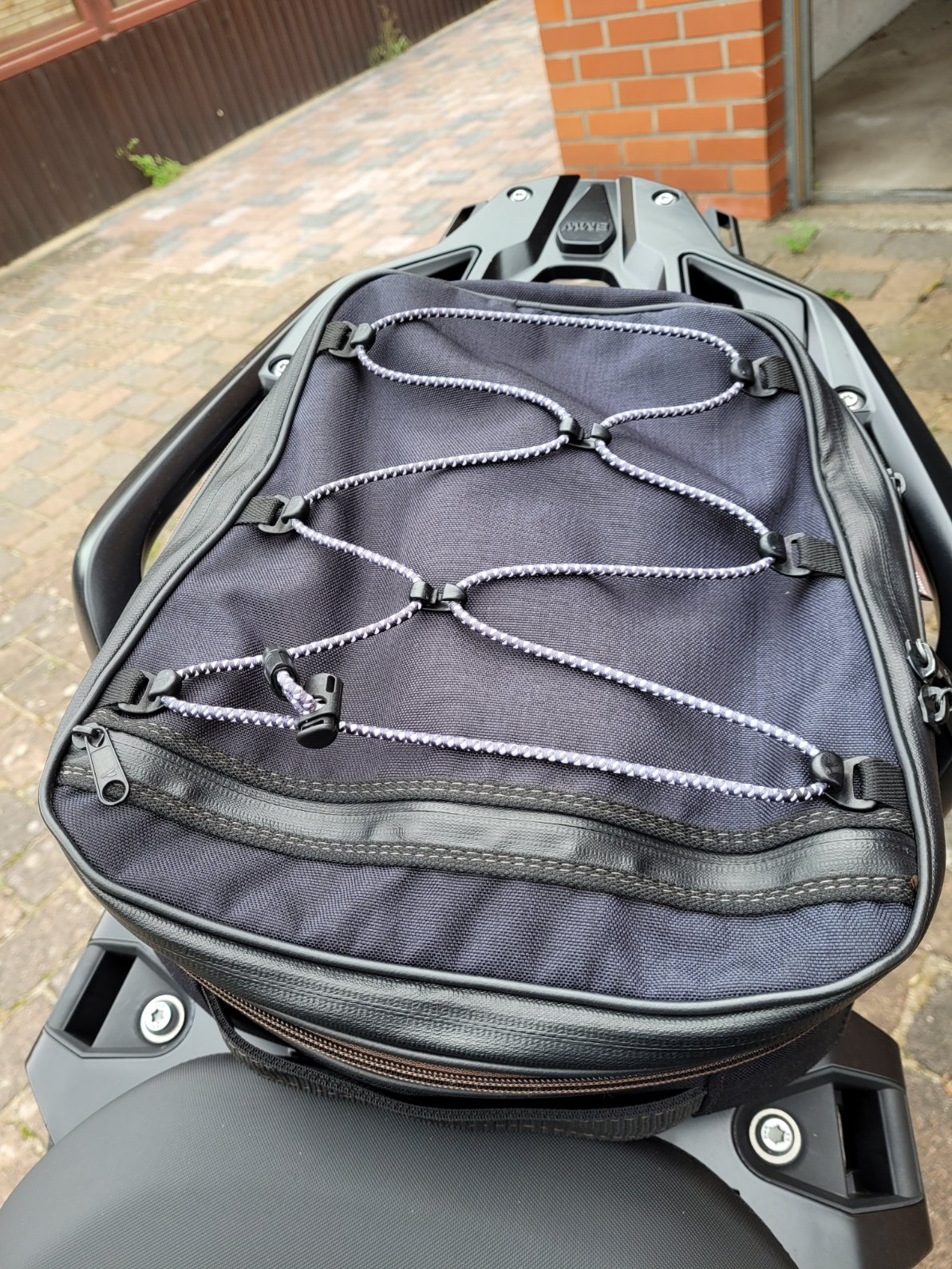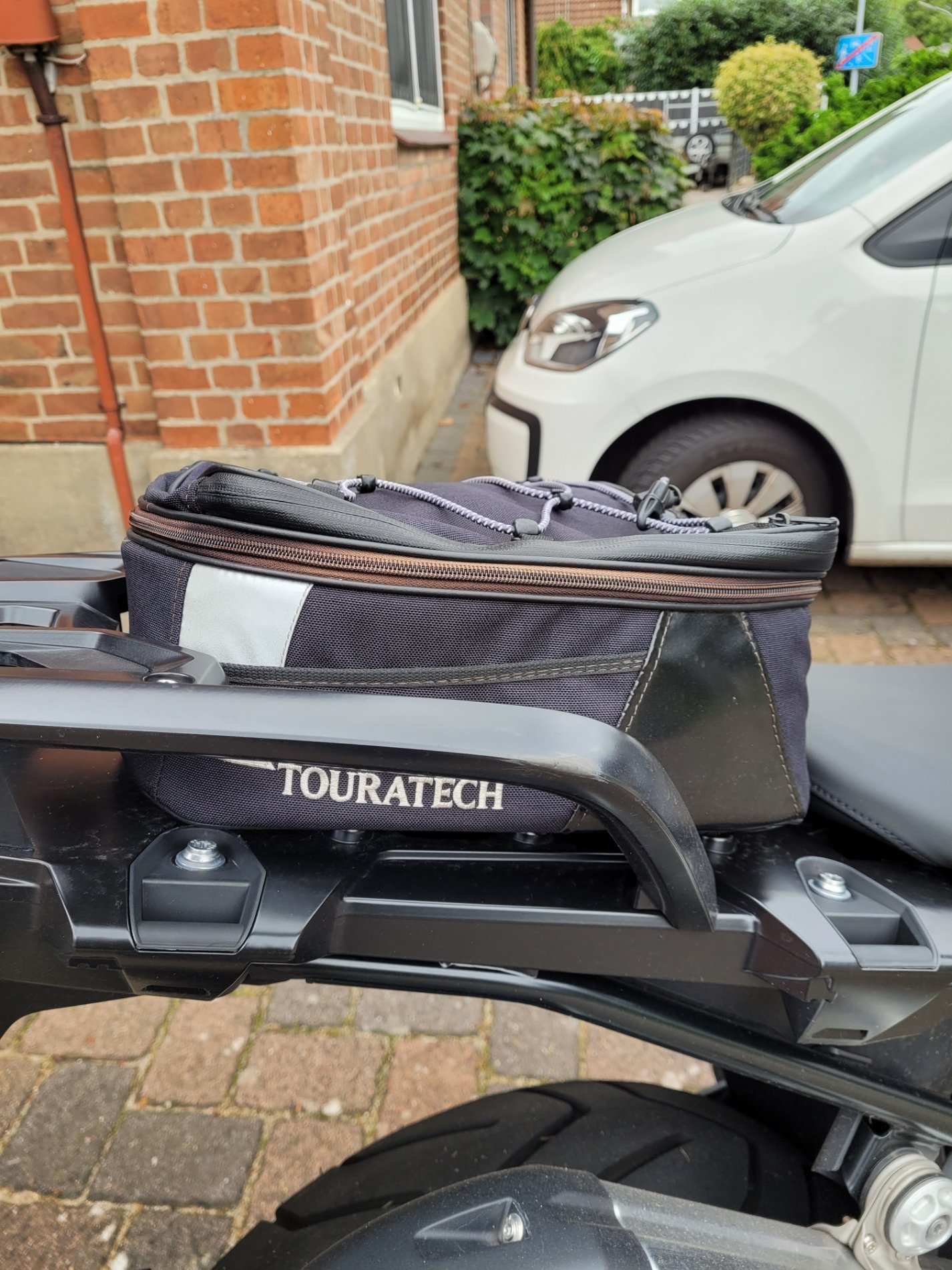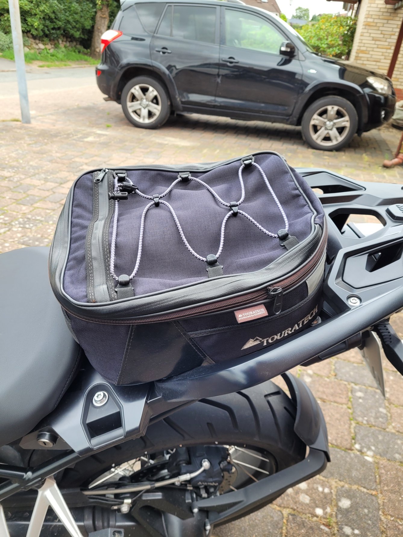 Tasche gibt es nicht mehr im Programm von Touratech, eine Top Lösung, wenn man nicht immer Riemen befestigen will!