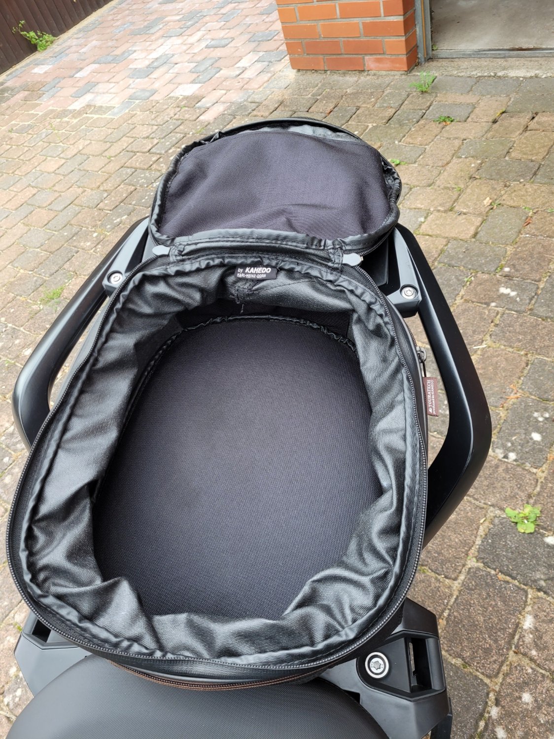 Tasche kann anstelle des Soziussitzes angebracht werden. Halteplatte ( wie Soziussitzunterseite ) an der Tasche vorhanden.