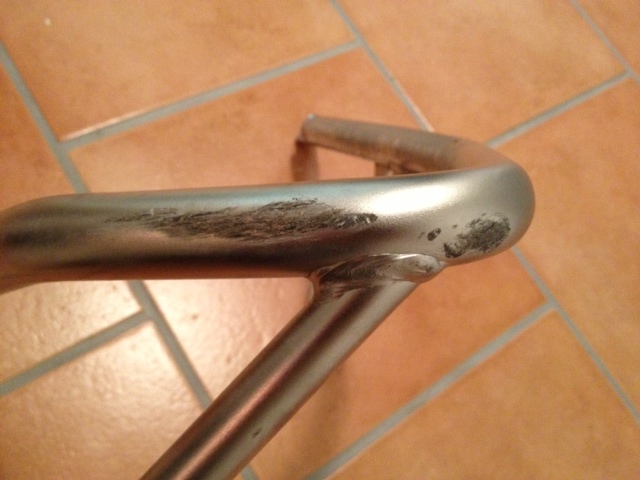 Touratech Sturzbügel links mit Abschürfung vom Umfaller.