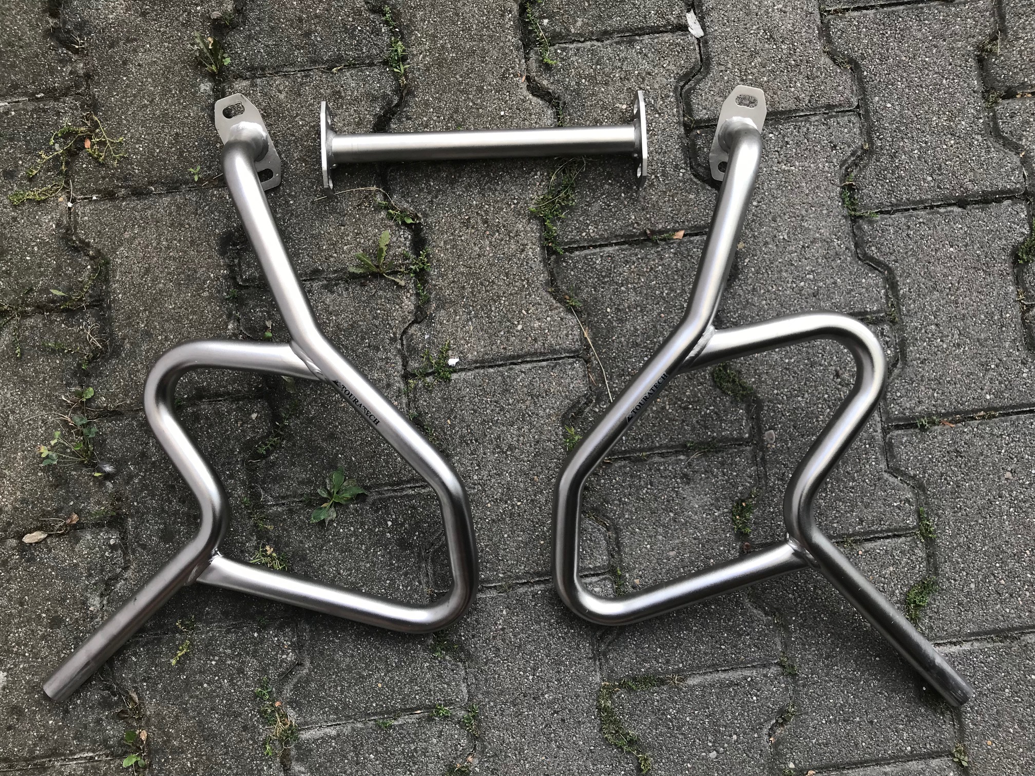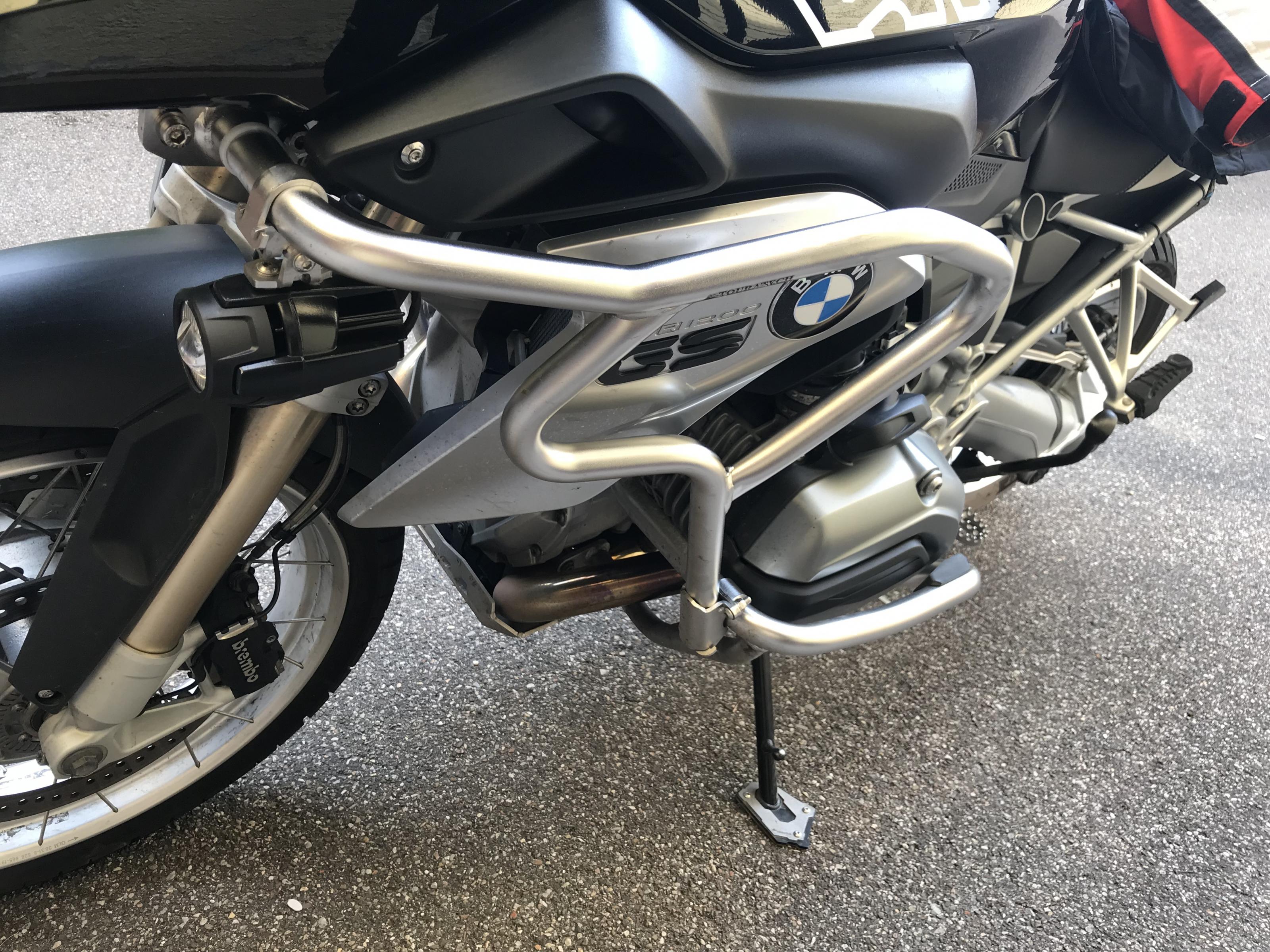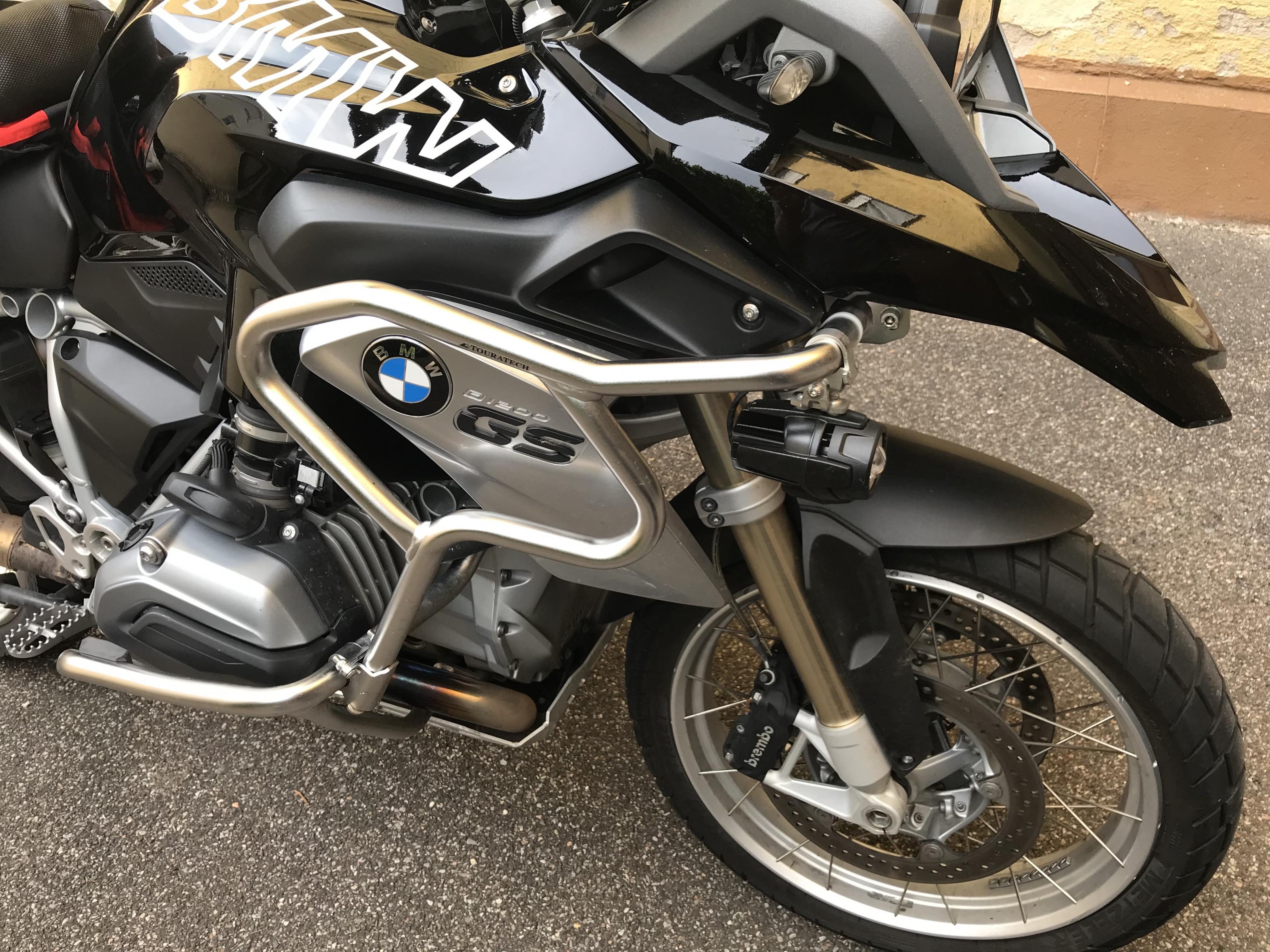 Zum Verkauf kommen Touratech Sturzbügelerweiterungen aus Edelstahl und die dazugehörigen Adapter für die Original BMW Zusatzscheinwerfer.