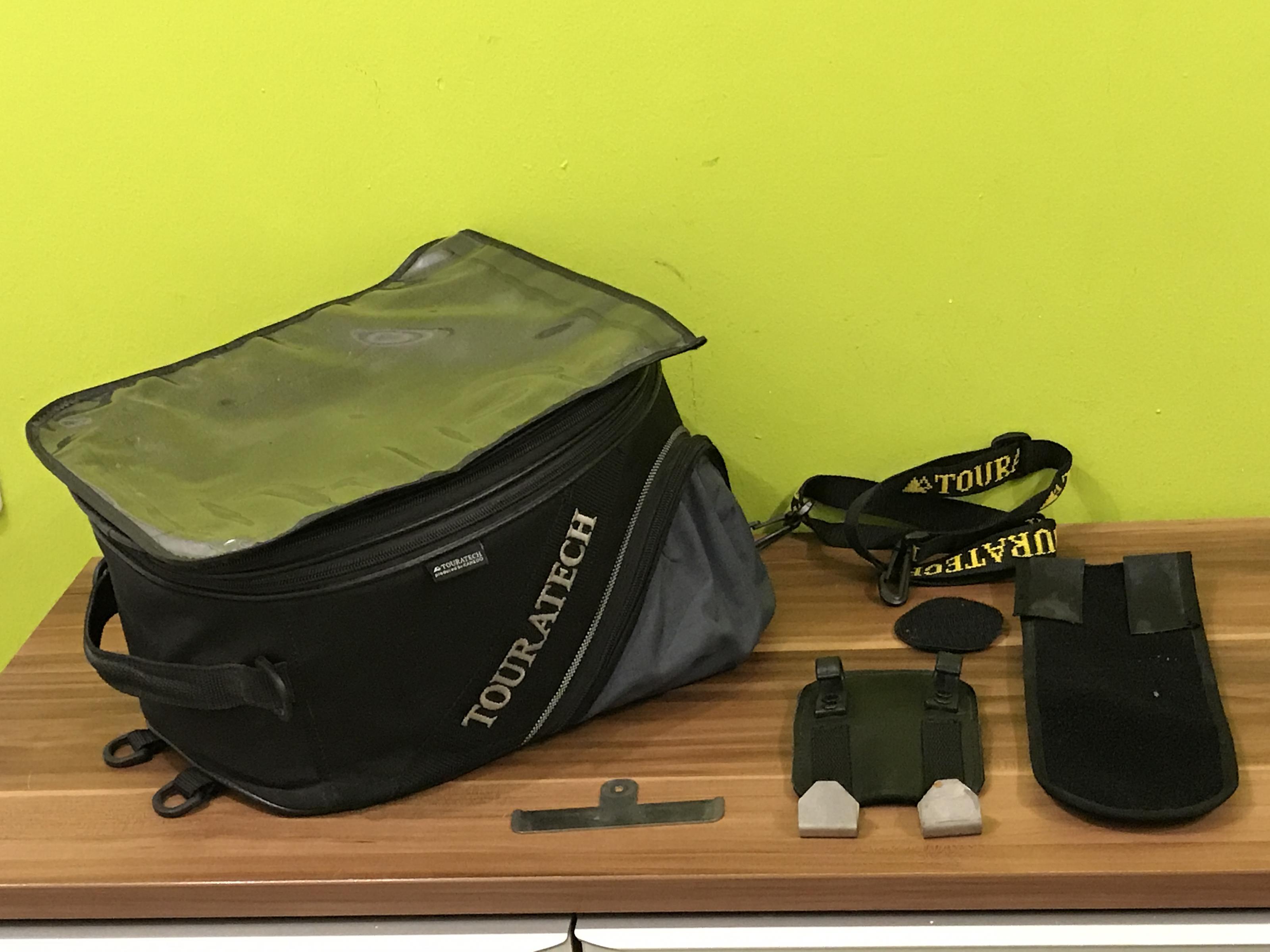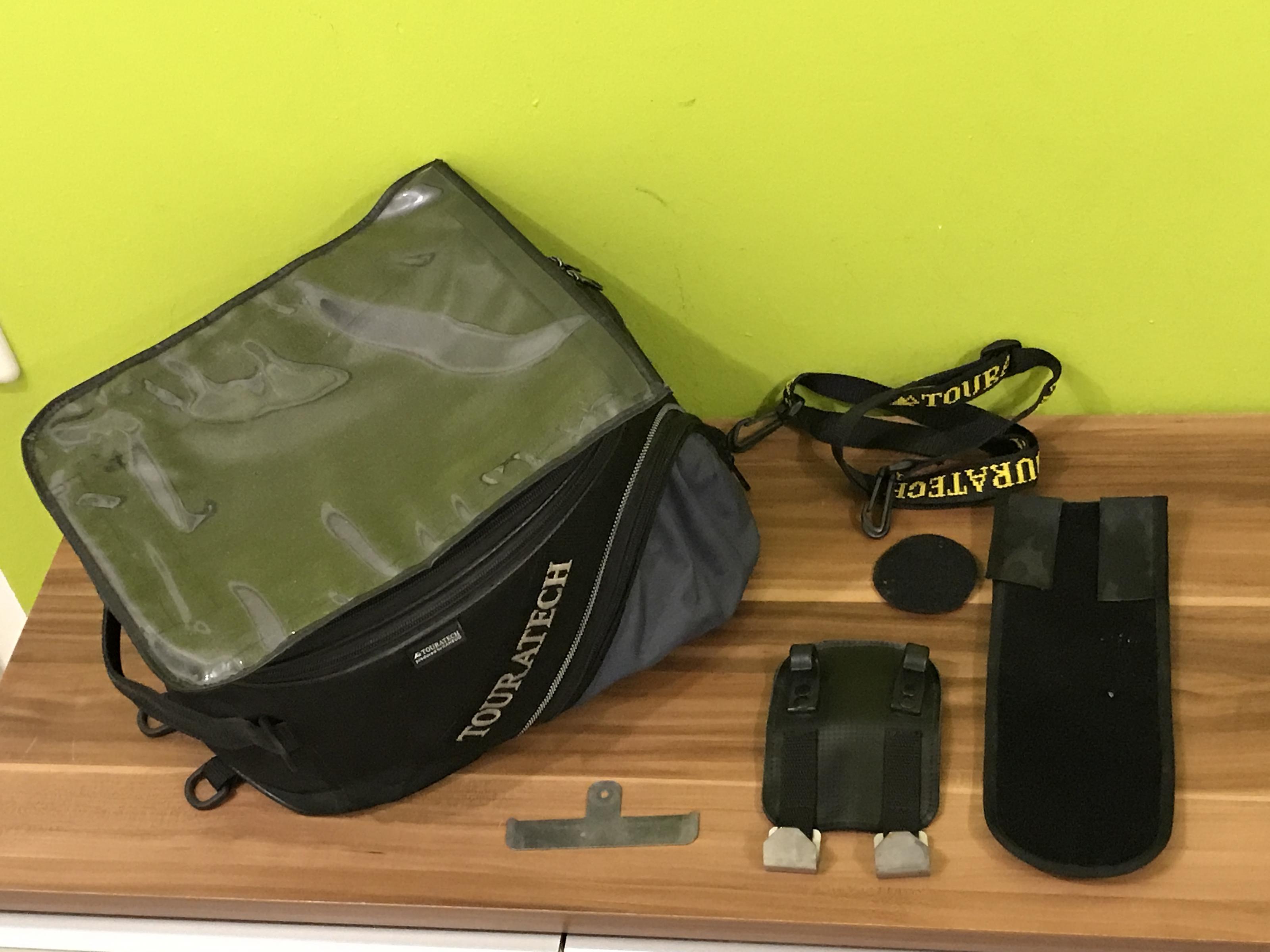 Das ganze Zubehör ist dabei. Nur 2 selbstklebende Klettstreifen muss man sich noch besorgen. Die könnte man von meinem Motorrad nicht wieder verwenden. Die sind aber für kleines Geld überall zu bekommen.