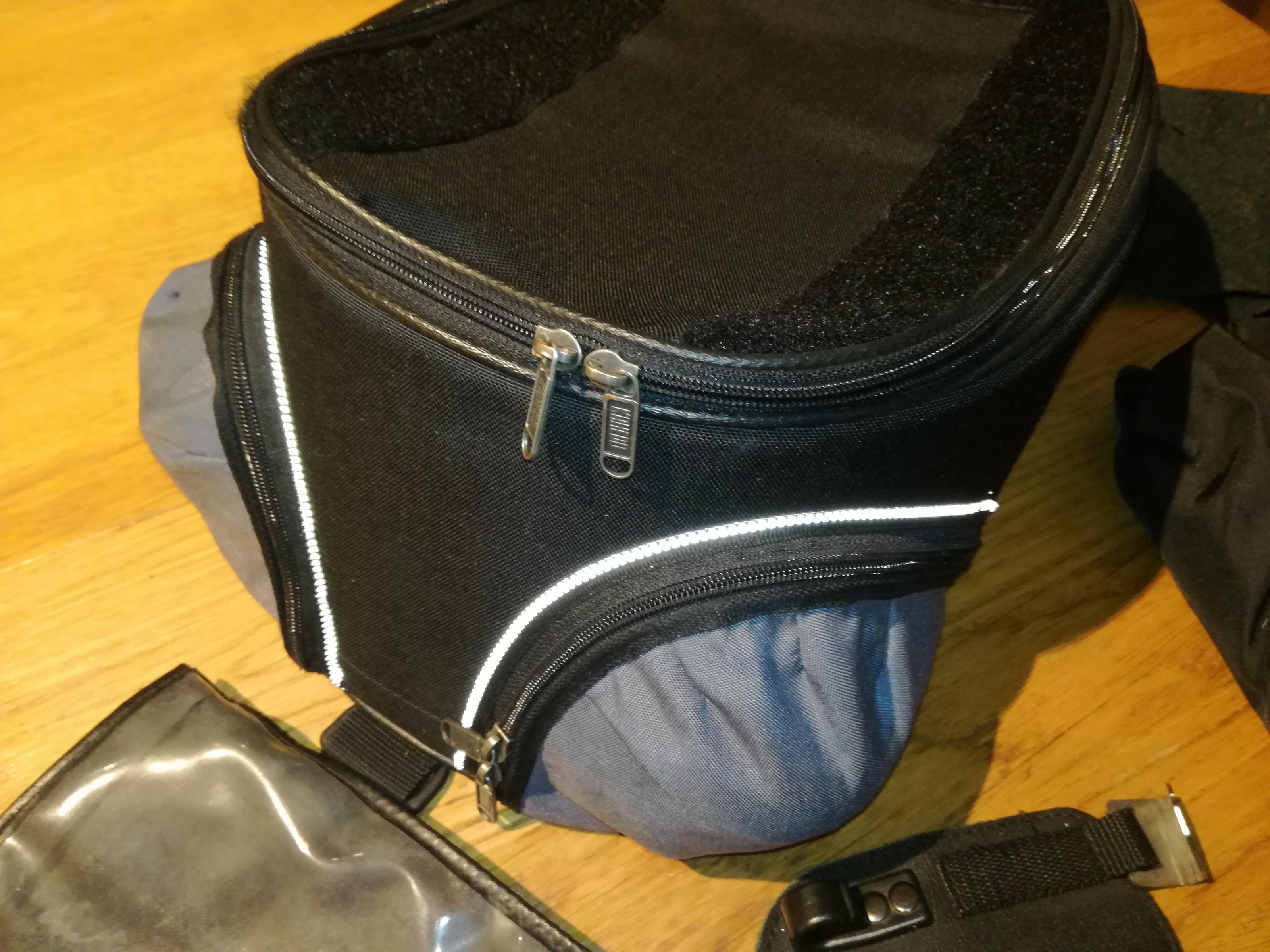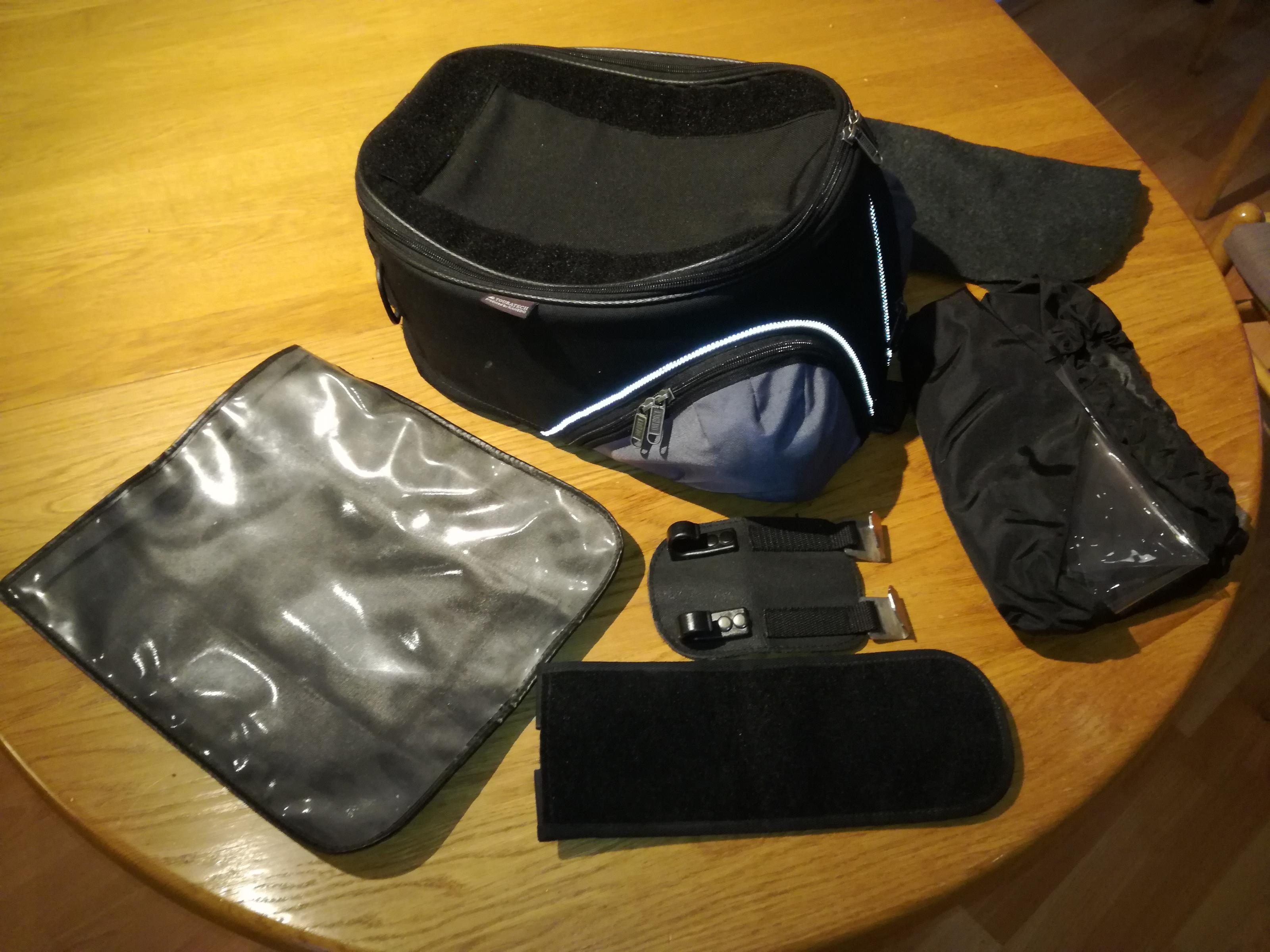 Dabei sind: Kartenfach (Natürlich mit Spuren), Regenhaube (wenig Benutzt), Halter hinten / vorne, Flies als Tankschutz wenn gewollt.