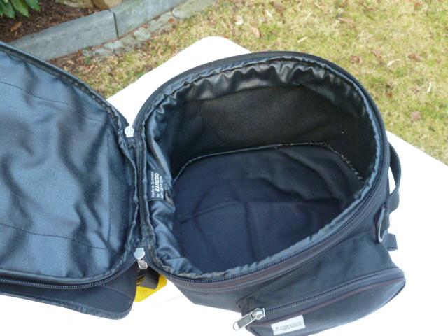 Außen befinden sich zwei separate seitliche Taschen. Super großes Kartenfach das mittels Klettverschluss auch abgenommen werden kann. Die Bodenfläche ist gepolstert und