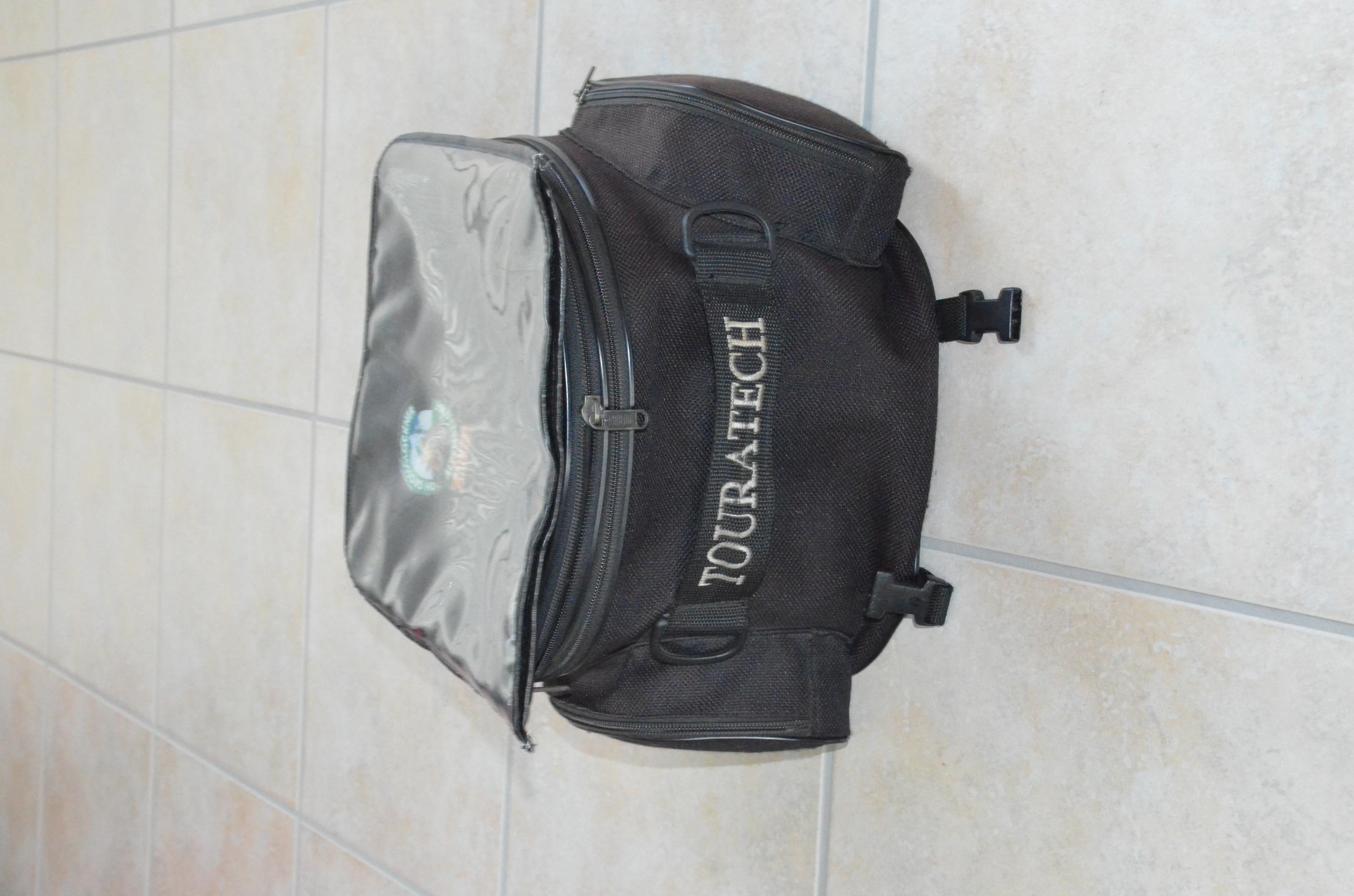 Angeboten wird hier ein Touratech Tankrucksack. Ich hatte ihn an einer Triumph Tiger 955i, einer V-Strom 1000DL und an meiner BMW R1200 GS. An der Reihenfolge lässt sich unschwer erkennen, dass er wohl schon ein bisschen älter ist. Funktioniert aber immer noch tadellos. Er ist halt nur gegen etwas moderneres ausgetauscht worden.