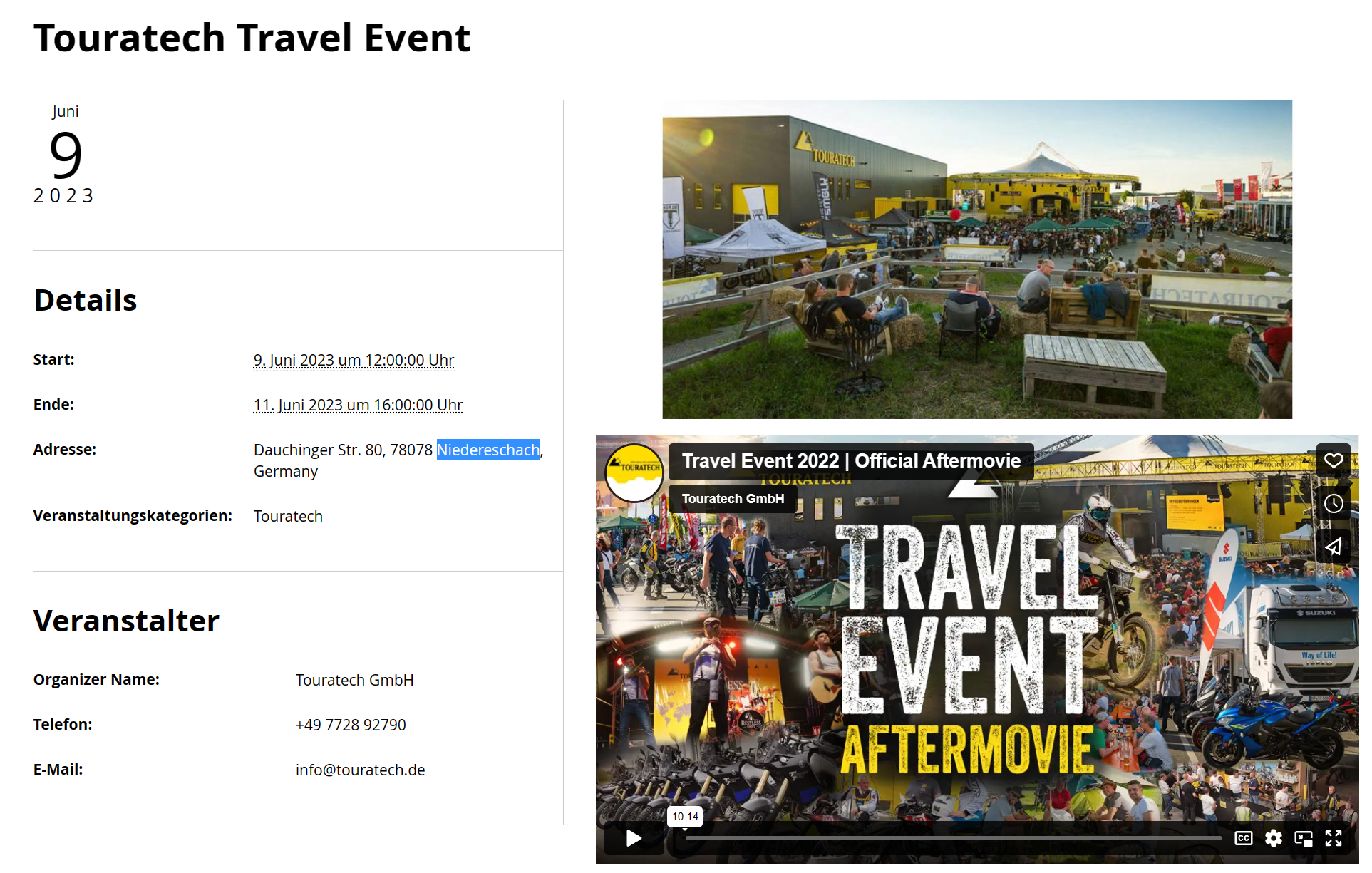 Dort findet das jährliche Travel Event statt . Werde dies vom 09.06 bis 11.06 besuchen und dort 2 Tage übernachten .